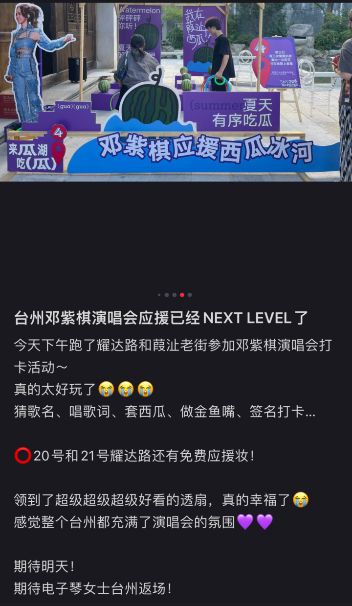 葭沚老街的“制冷计划”不仅为邓紫棋演唱会增添了别样的风采,更成为了展示台州文化创新力和城市魅力的新窗口。随着“为一场演出奔赴一座城”成为越来越多人的出游选择,这种“出去玩+看演出”的双重消费模式,无疑将继续推动文旅市场的繁荣发展。