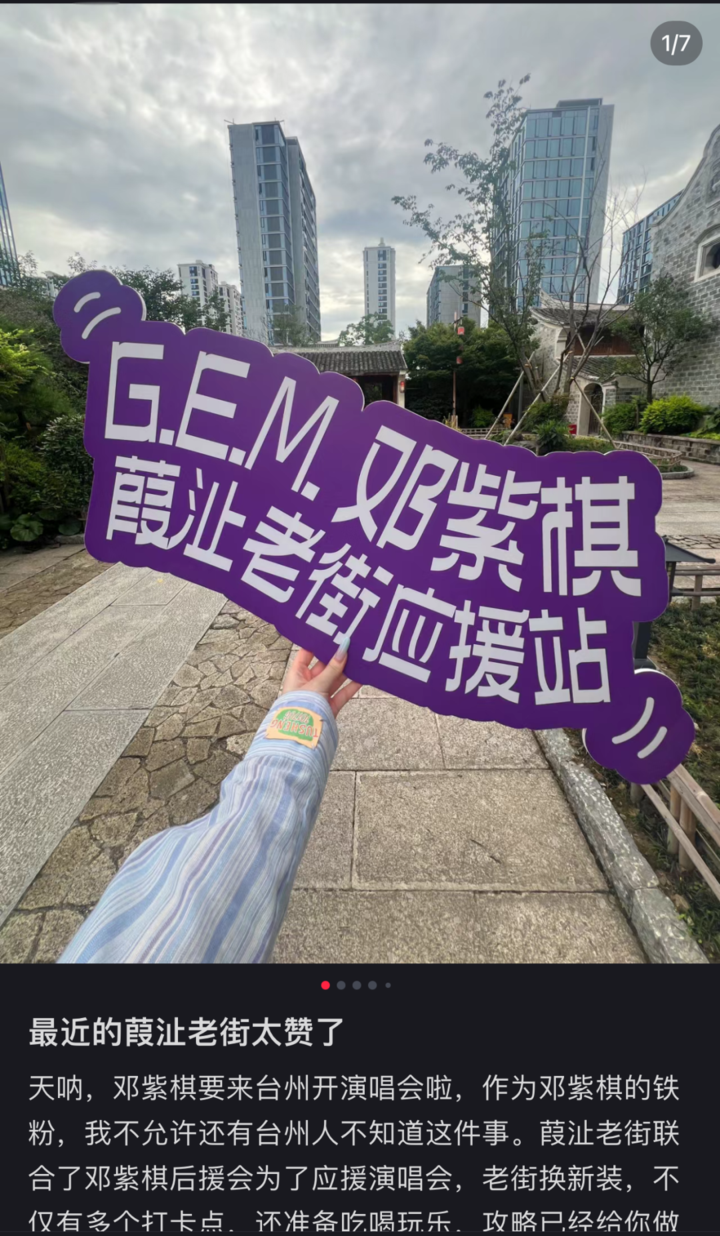 在葭沚老街,游客们可以在五个精心设计的应援打卡点位进行互动,完成打卡任务后即可领取精美的应援物料。据统计,活动期间共派发了上万份应援物资,显示出极高的参与度和人气。特别是“我想要邓紫棋的行李牌”和“邓紫棋冰箱贴也太可爱了”等活动兑换处,更是吸引了众多粉丝和游客的目光,活动现场人潮涌动,热闹非凡。