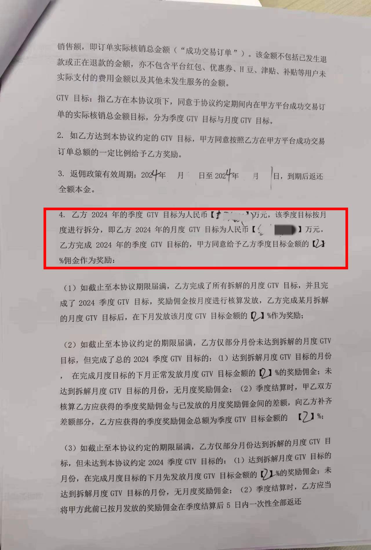 年度KA客户GTV达标返佣奖励补充协议 受访者供图