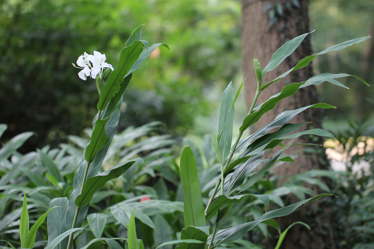 如此高雅美丽的姜花是否可以在家栽培?汪弘毅告诉记者,姜花虽然不是姜,但和姜同属姜,都有根状茎,根茎部分会在土里发散开来,如果想在家里养植最好是陆地栽培,如果选择在盆里,会限制根茎发展,开花较少。另外,姜花喜半阴,如果太阳太大,叶子容易发黄,如果全部放在阴凉处,会限制其生长。一般姜花的叶子呈长圆状披针形,约20~40厘米,宽约10~15厘米,相互交错地排列于茎的两侧,美得井然有序,据说姜花叶还是包粽子的绝佳材料。