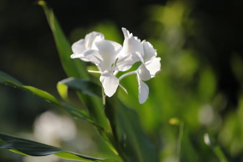 在这里,既能欣赏莫奈笔下的睡莲和最近的石蒜精品展,还有酷似“玉蝴蝶”的姜花,远远看去仿佛一只白色的蝴蝶停留在一片翠绿的叶子之上,走进还有一阵淡淡的香甜花香,让人感觉神清气爽,它有个很好听的名字,叫姜花。