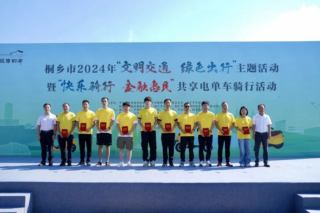 正值“世界无车日”来临之际,9月22日,桐乡市2024年“文明交通、绿色出行”主题活动暨“快乐骑行、金融惠民”共享电单车骑行活动在凤凰湖畔举办。活动中,今年以来租借电单车频次最多的10位市民朋友,收获了一份桐乡市共享电单车“骑行体验官”聘书,并受邀在骑行中提出自己的建议。