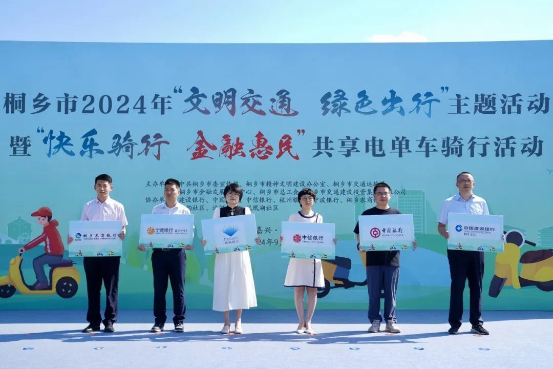 如何给市民提供实实在在的优惠?交投集团联合建设银行、中国银行、中信银行、杭州银行、宁波银行、桐乡农商银行共同推出了共享电单车支付优惠活动。现场,银行代表纷纷上台,解锁了满减、半价、充值折扣等多样惠民政策。