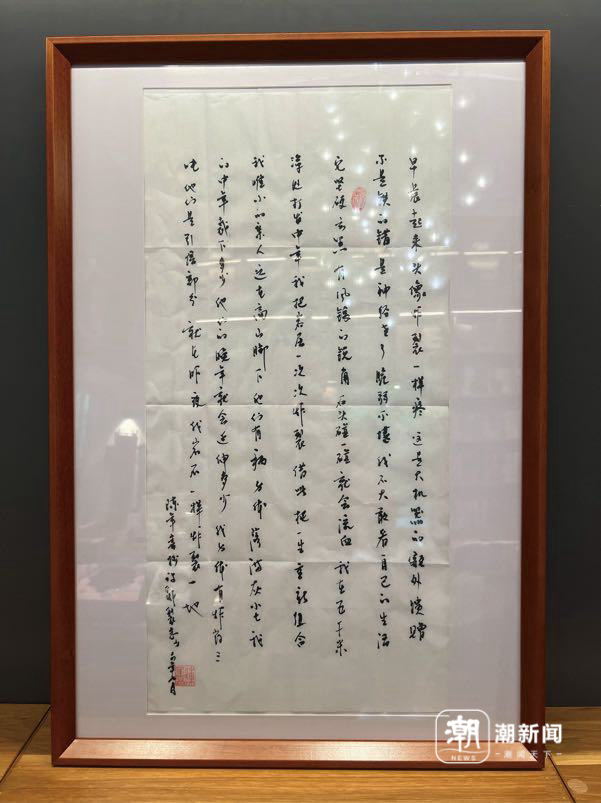 中国当代作家、诗人陈年喜手抄了一份他的诗歌《炸裂志》,连同其他书法作品一起,捐赠给了书吧。