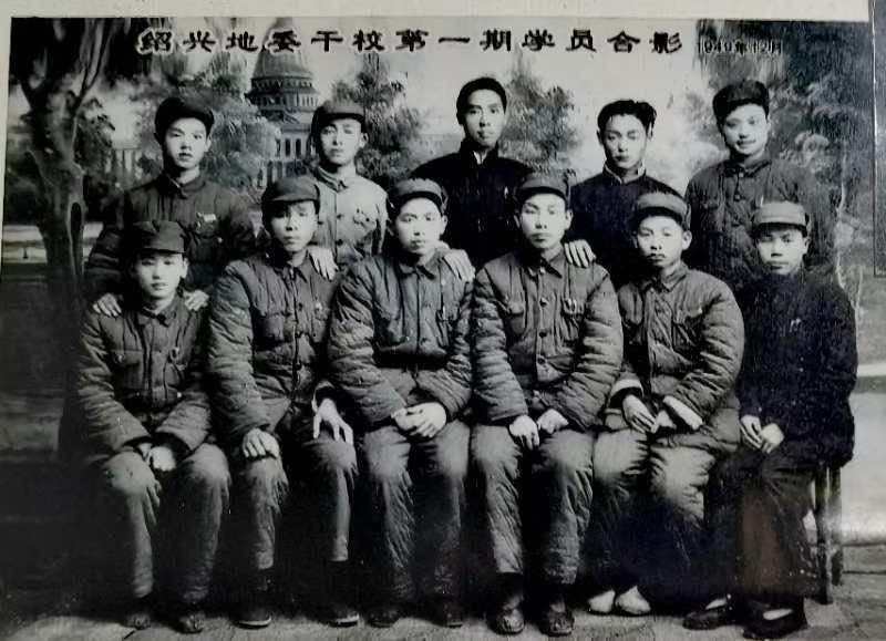 图为:1951年,沈知影同志(后排右一)与新昌县公安局的同事们参加学习班合影