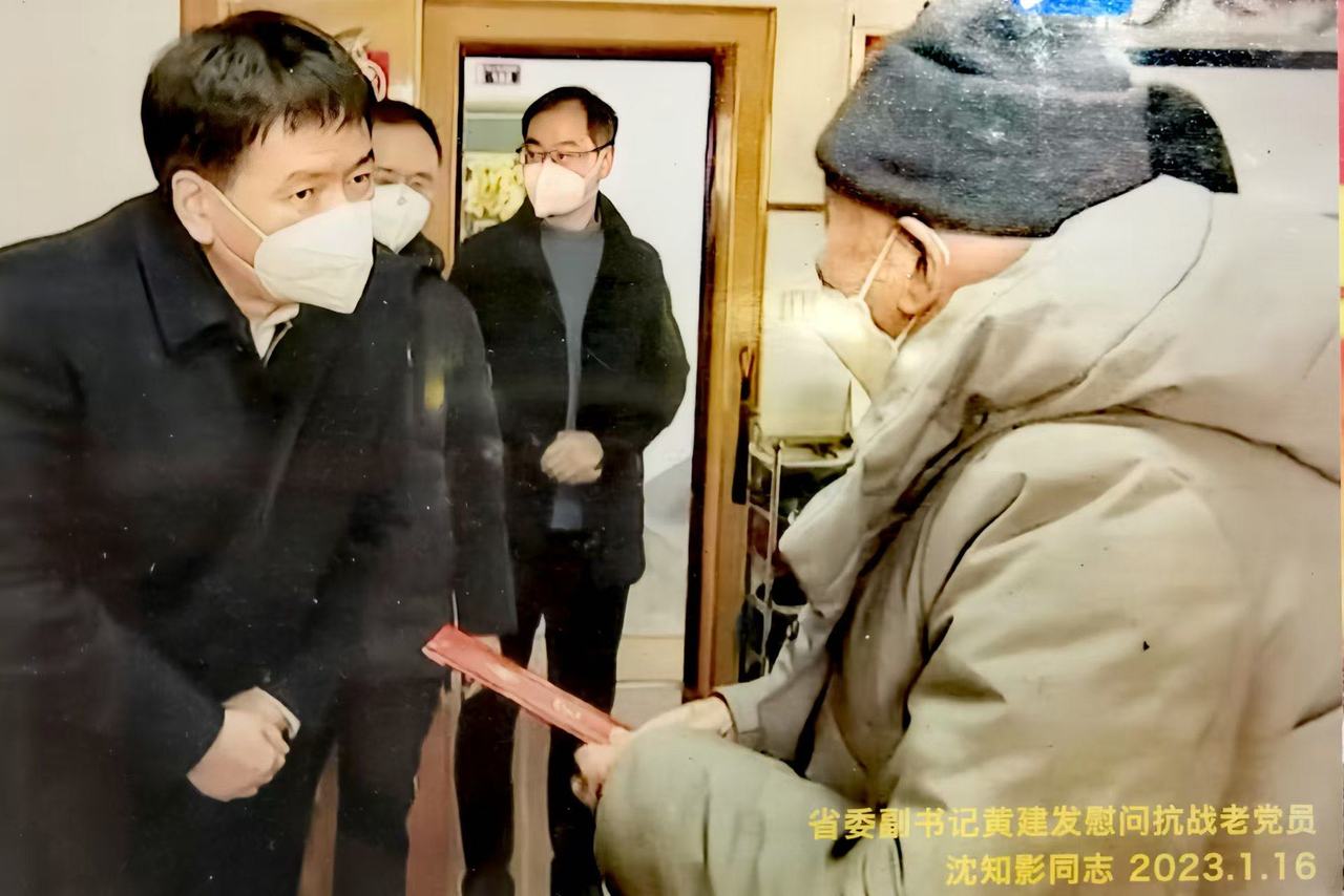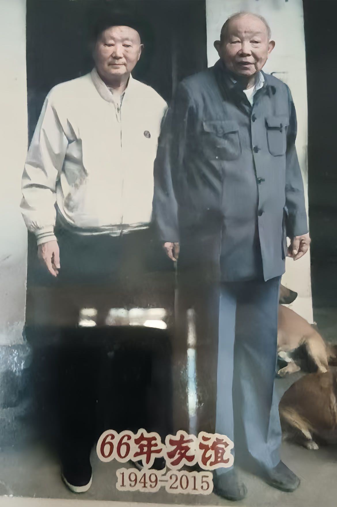 图为:沈知影同志与老革命(原县委书记)俞辉华同志合影