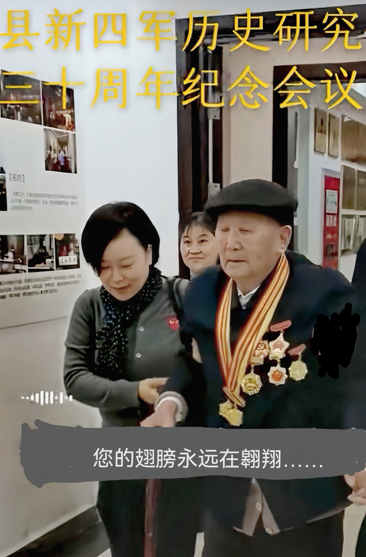 图为:98岁沈老应邀参加新昌县新四军研究会成立三十周年纪念会