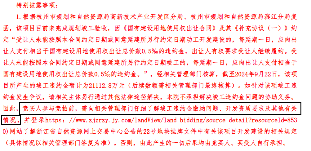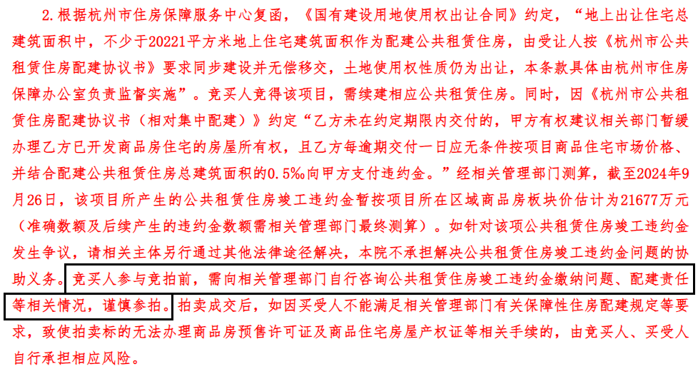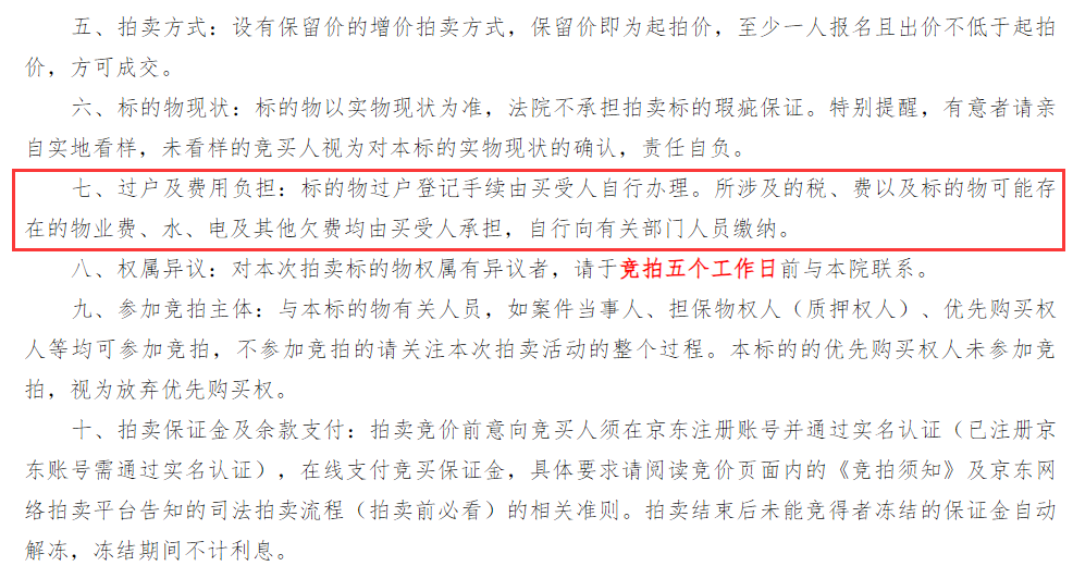 当然,这个保本价并非针对法拍竞买人。按照此次的法拍起拍价18.3亿元,起拍楼面价仅18892元/㎡。但值得注意的是,根据拍卖公告,违约金、税费等将由竞买人承担。