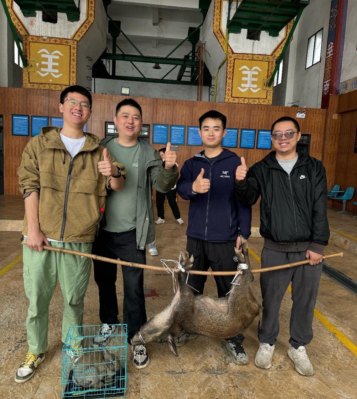 兄弟四人在景区逮到野兔和野猪 图源:受访者提供