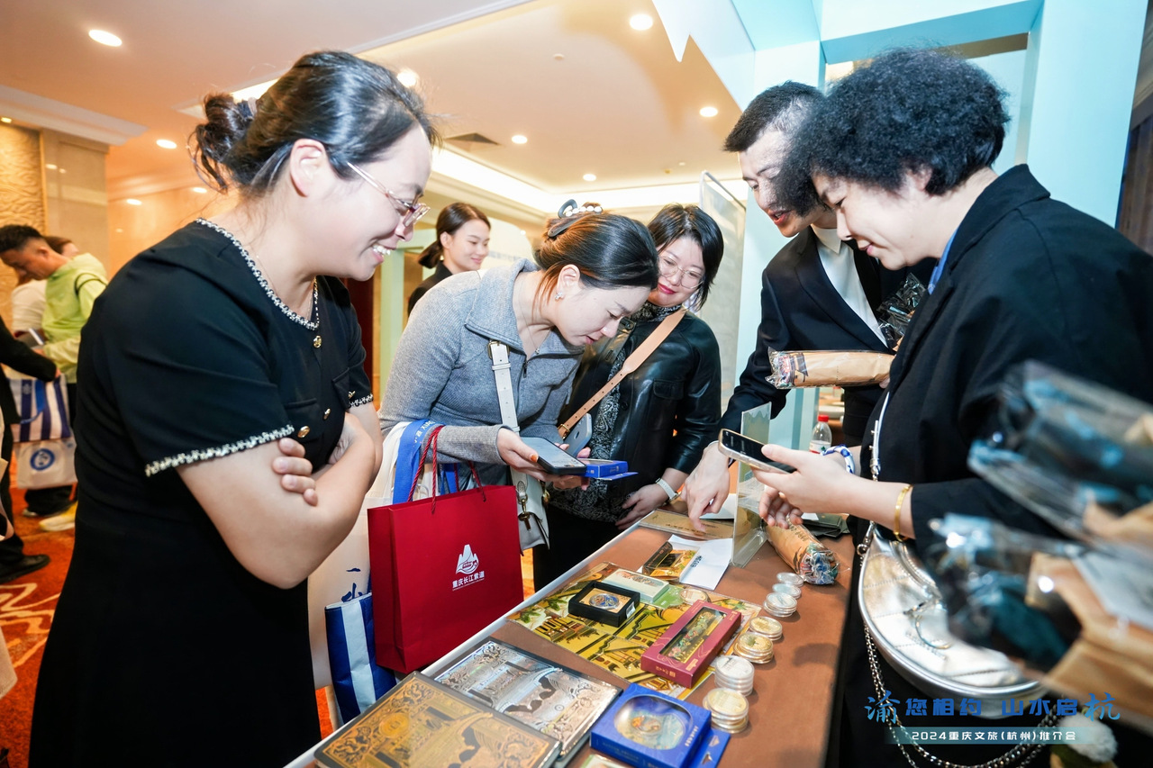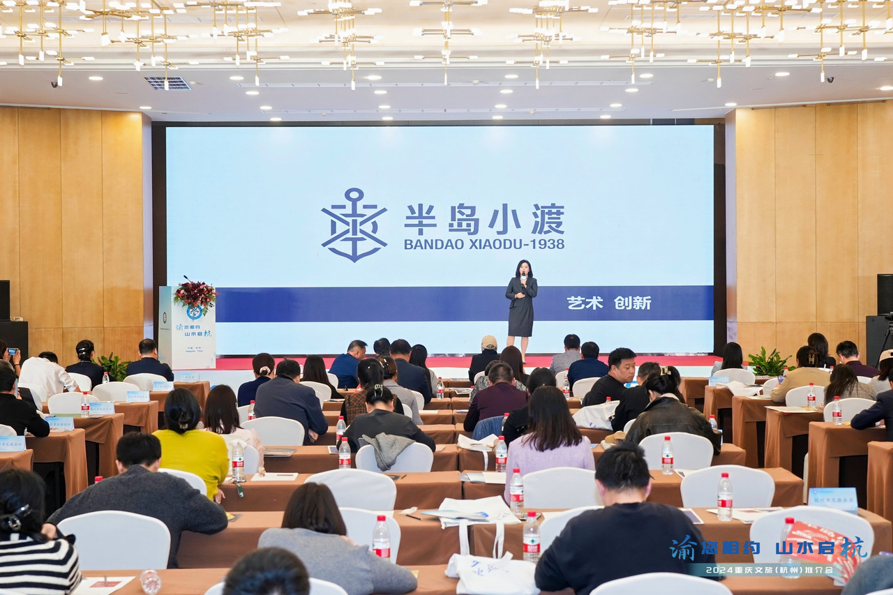 11月8日下午,“渝”您相约,山水启“杭”——“2024重庆文旅(杭州)推介会”上,来自重庆渝中区的重庆长江游轮有限公司、重庆索道公司、重庆市客轮有限公司等多家文旅企业,将最地道、最本土、最人文的重庆游玩方式展现在杭州游客面前。