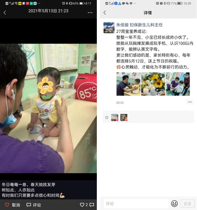 而在此期间,见不到孩子的焦虑,随着时间一天天过去,在这对新手父母心里急速蔓延。“小乖的主诊医生是新生儿科的朱佳骏主任。住院的时候,我老是去‘烦’他,‘怎么还不脱氧?’‘同时期的早产宝宝都陆续出院了,我们什么时候能出院?’‘我看到有篇文献报道了新的XXXX技术,我们能试试吗……’”