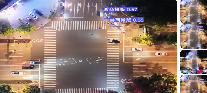 近日晚上9点,通过无人机AI算法处理自动生成的问题线索,宁波市北仑区新碶街道综合行政执法队执法人员立即赶赴现场,对流动摊贩无照经营行为进行了依法查处,并恢复了路口交通。