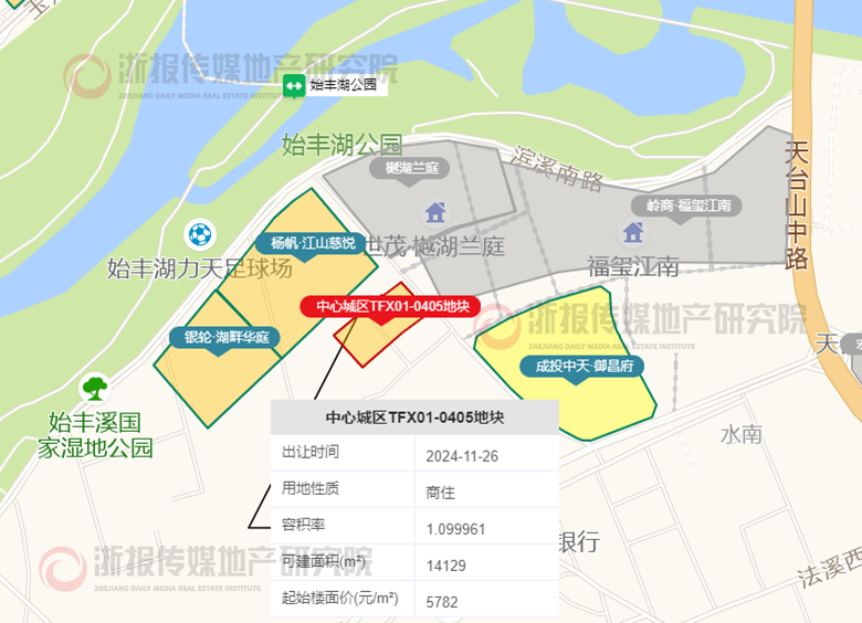 地块位于始丰湖南面,周边环境优美,小区楼盘林立。目前附近的成投中天·御昌府、杨帆·江山慈悦和银轮·湖畔华庭均在售,项目未来上市之后去化压力较大。