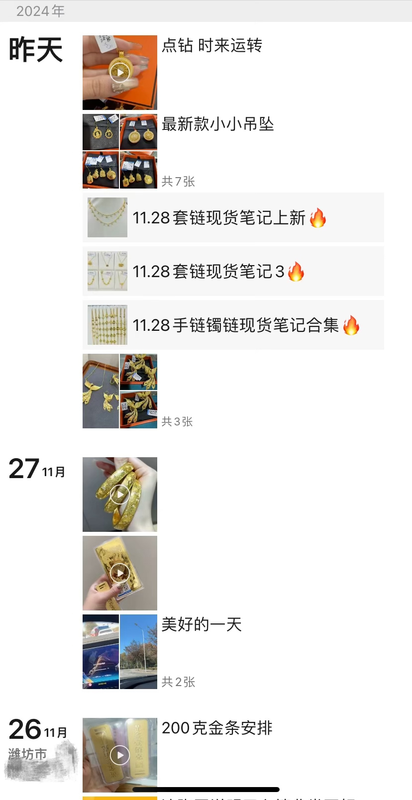 被抢劫的金店老板朋友圈里,昨天(11月28日)还在正常发布产品介绍的图片、视频。受访者供图