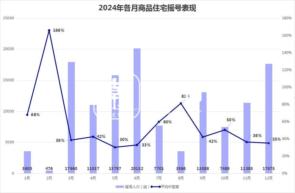 如果从2024年各月新房摇号情况来看,历月摇号人数以及中签率上下起伏较大。