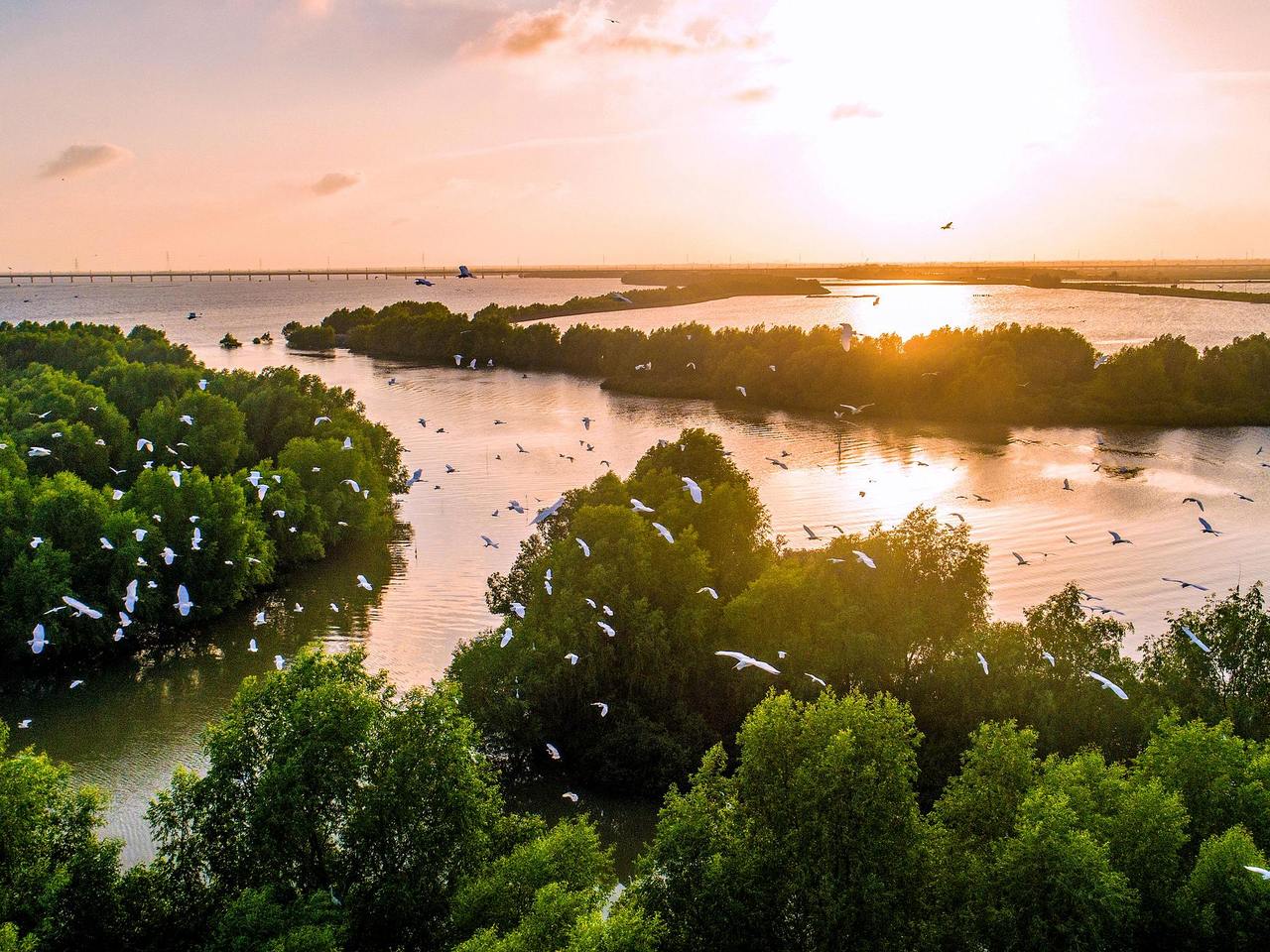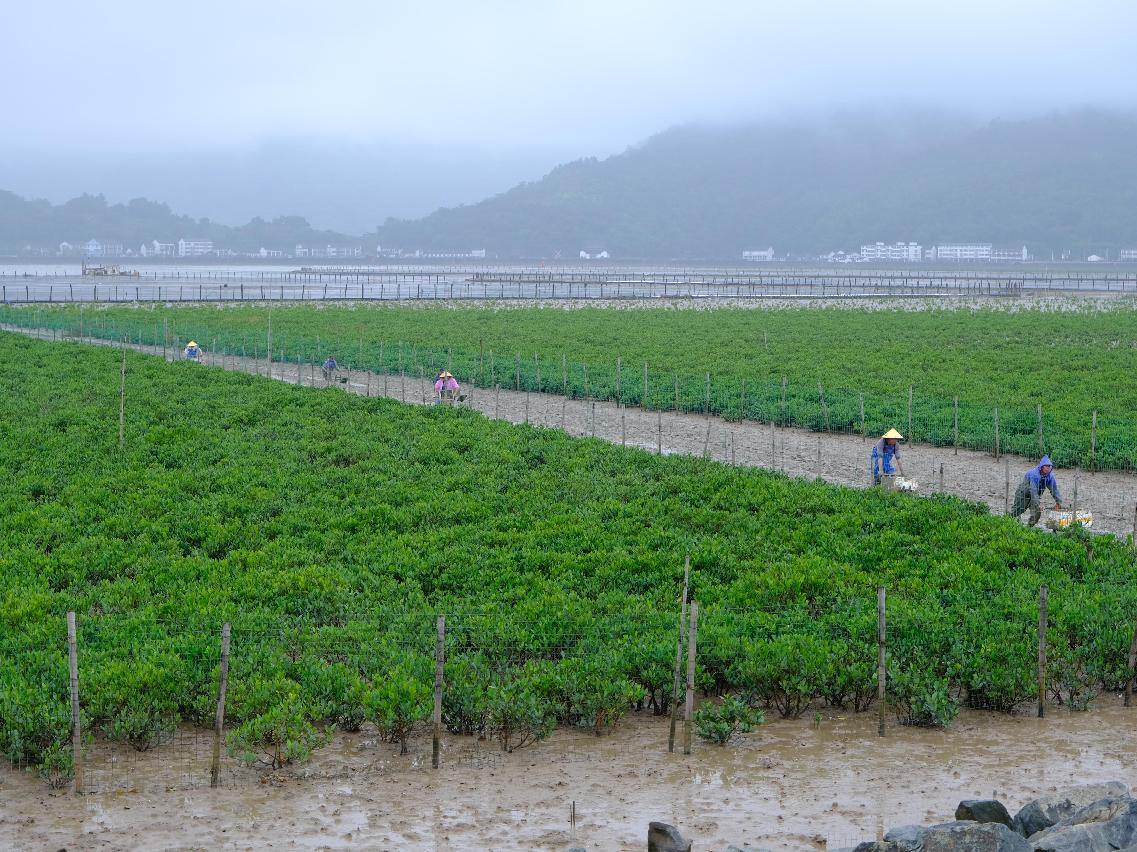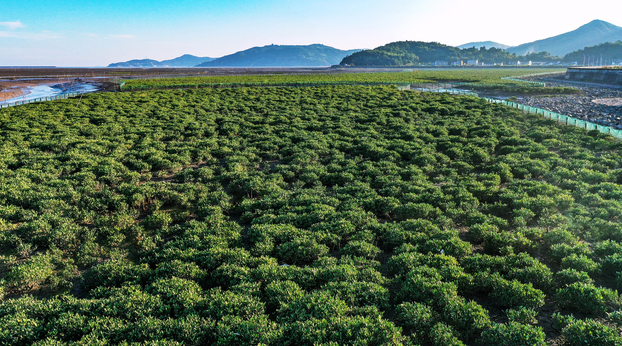 海岸生态修复,铺就海湾绿色新生之路。苍南开展退养还湿、本底调查、滩面治理、宜林生境改造等工作,近年来在沿浦湾累计种植红树林近1700亩,打造中国北缘面积最大的海湾红树林湿地,入选2023年全国海洋生态保护修复九大典型案例,显著提升湾区海岸线形态和生态功能。据统计,沿浦湾自然岸线保有率66.88%,红树林潮间带的生物量从2015年至2022年增长近7倍。近两年,沿浦湾记录鸟类88种,其中一级保护鸟类3种、二级保护鸟类5种。
