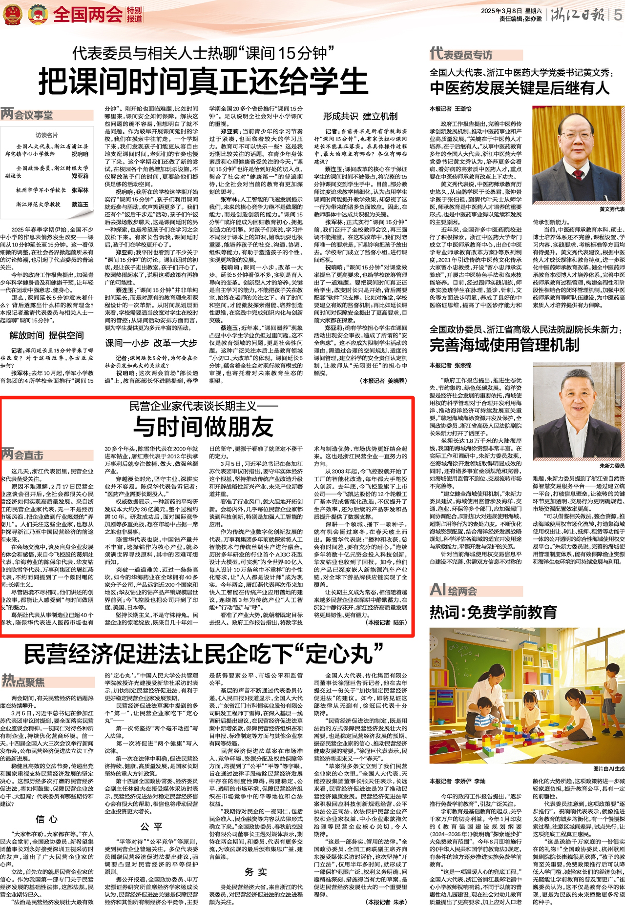 3月8日,《浙江日报》刊发《民营企业家代表谈长期主义——与时间做朋友》一文,来自嘉兴的民营企业家代表谈长期主义,全文如下: