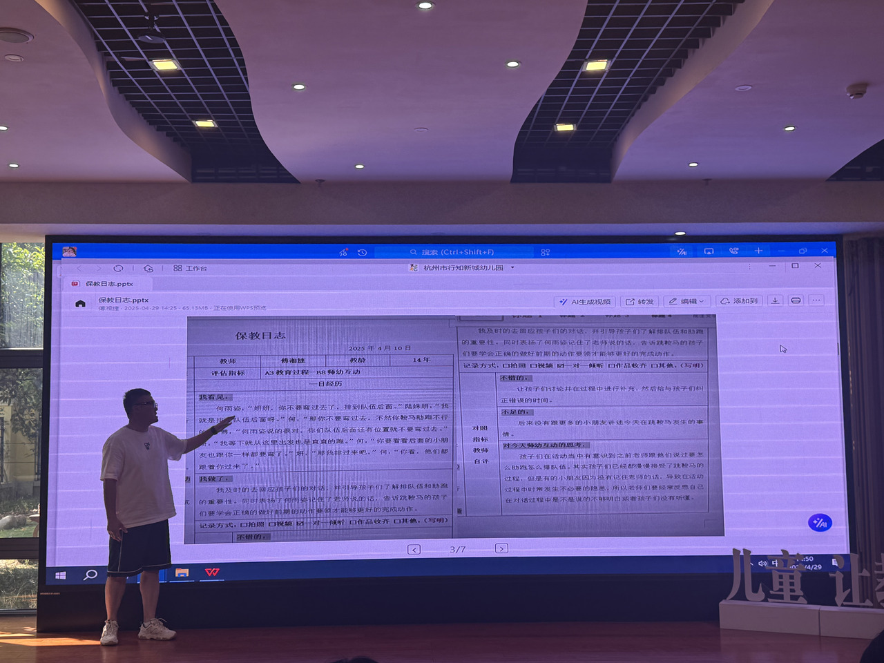杭州市海潮幼儿园的教师们将研讨成果转化为行动实践。各班级基于保教日志,将 “日志分析 - 问题诊断 - 策略迭代” 这一反思闭环运用到一日生活环节当中,实现从经验型记录到研究型反思的专业进阶。