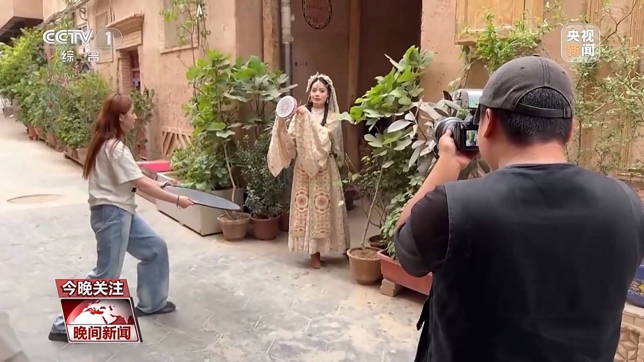 新疆喀什古城这家旅拍店开业5年,从4、5名员工发展到如今30多人的团队,其中旅拍定制师就有6名。最近,23岁的导游艾合太尔古丽·艾海提也加入团队,转型拿起了相机。