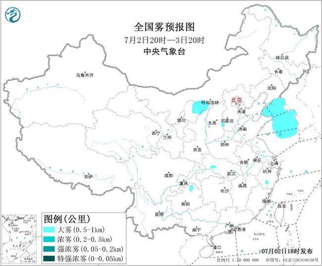 中央气象台7月2日18时继续发布大雾黄色预警: