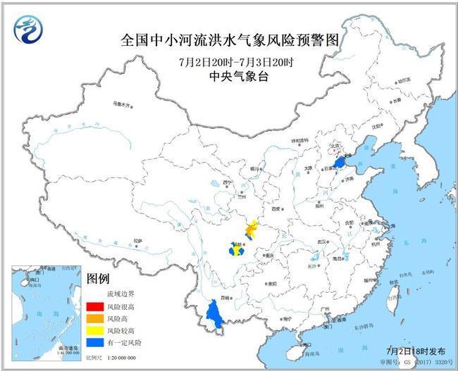 中央气象台7月2日18时发布中小河流洪水气象风险预警: