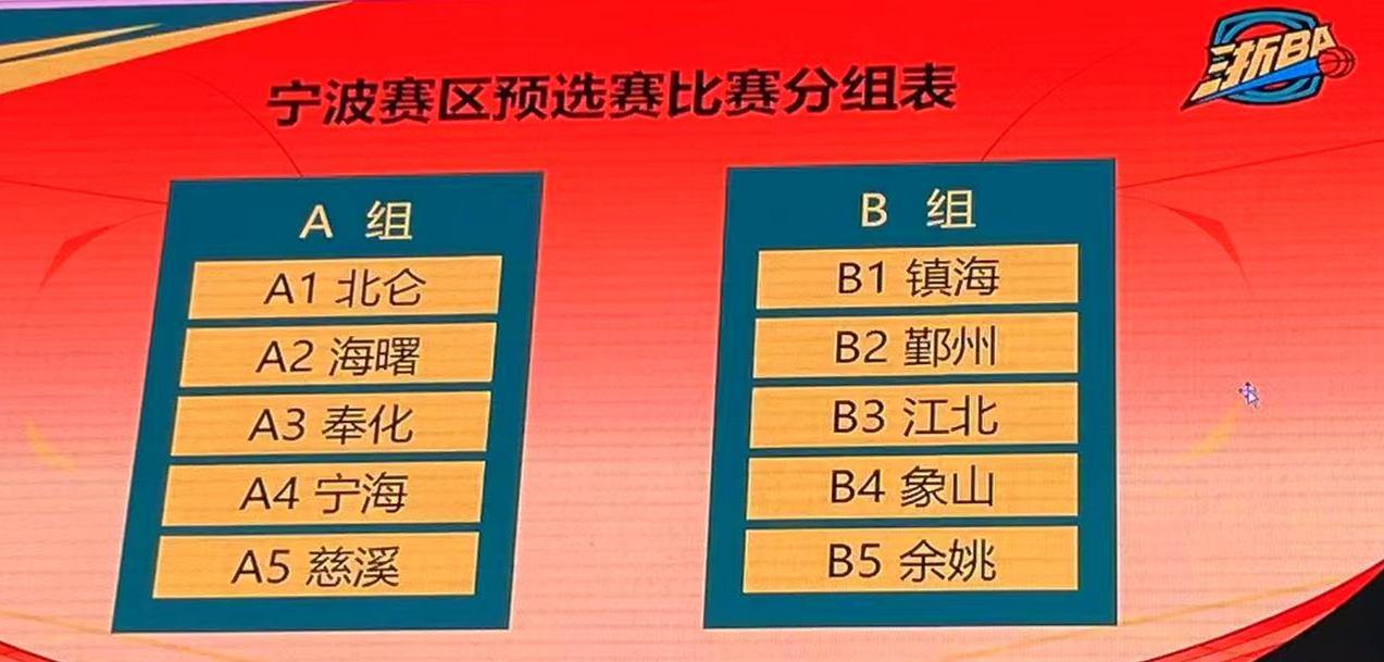 记者了解到,本次“浙BA”宁波赛区预选赛将分为A、B两个组,每组5支球队,采用单循环赛决出小组名次,小组前两名晋级淘汰赛。淘汰赛采用交叉赛制,决出两支决赛球队。