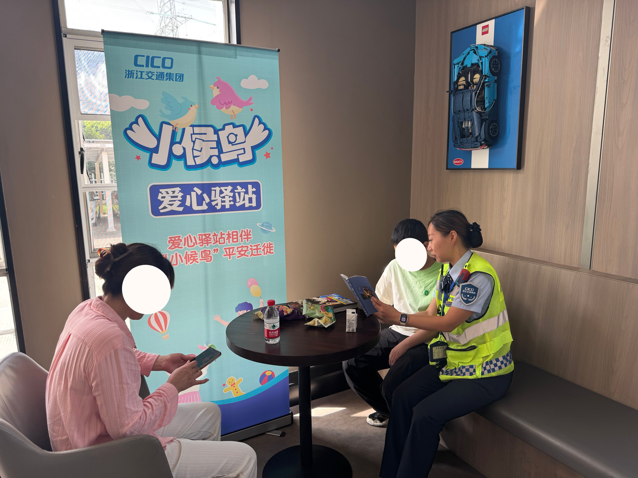 7月23日上午9时,沪杭高速嘉兴东收费站广场热浪袭人。收费员包赟发现一对母女在烈日下等候,立即引导至“小候鸟”爱心驿站。驿站内配备空调、饮用水、牛奶、小零食等,并设有儿童书刊阅览区和应急医药箱,供“小候鸟”及家长短暂休憩。“你们这驿站真是太贴心了!”母亲由衷赞叹。驿站由党团员志愿者轮流值守,在提供贴心服务的同时,工作人员还会开展交通安全知识宣讲,通过趣味互动、案例讲解等方式,增强家长和儿童的出行安全意识。目前,嘉兴管理中心在所辖收费站均设置类似休息场所,部分站点还配备母婴室,为有需要的司乘人员提供临时避暑点。