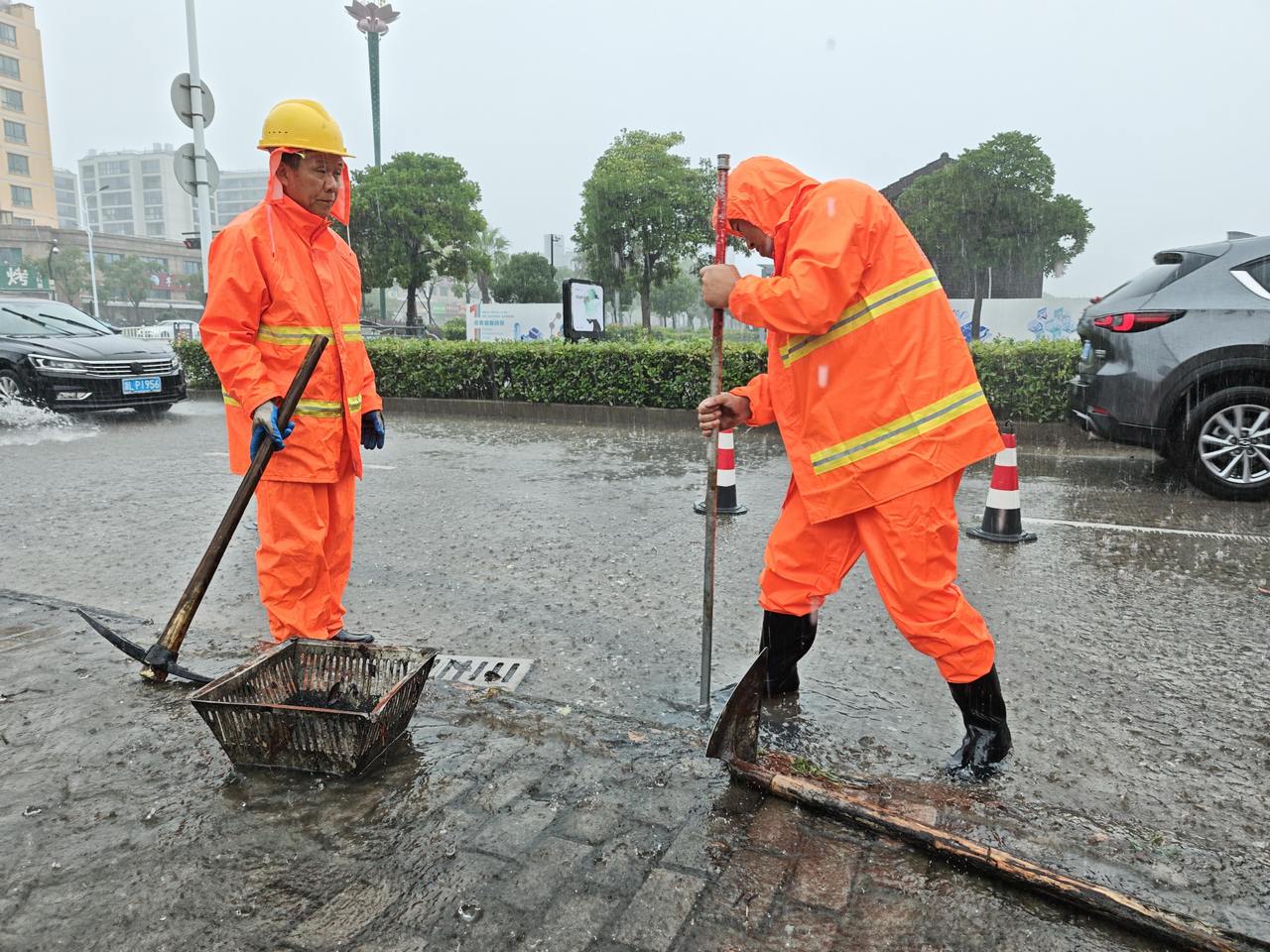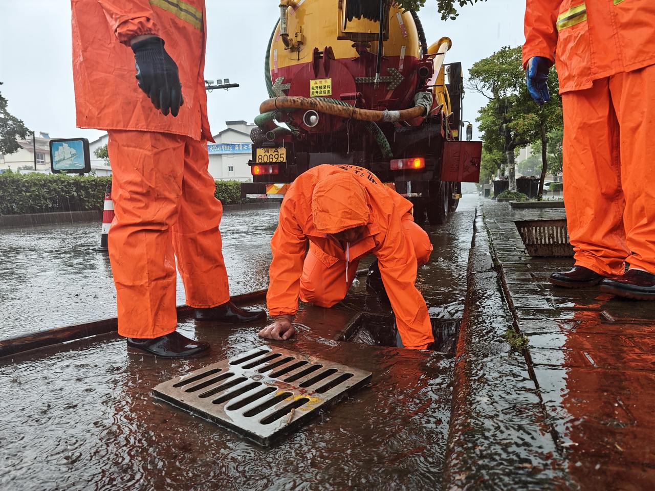 与此同时,朱家尖城区内主干道也正加紧对下水道进行清淤疏通,确保道路安全畅通。