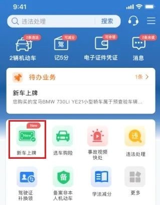 车主购买车辆,提前申领指标,登录“交管12123”APP车主账号(注册地为“杭州”),进入“新车上牌”模块。