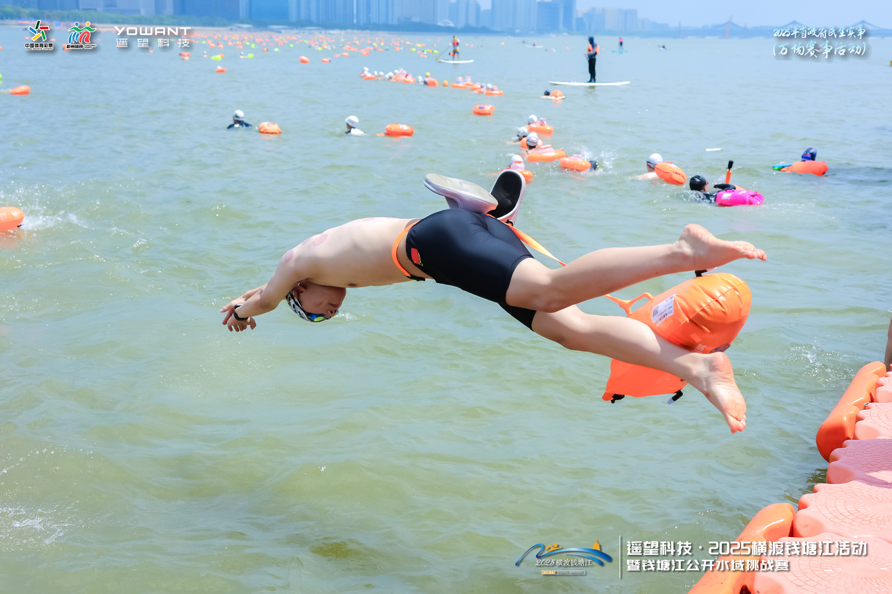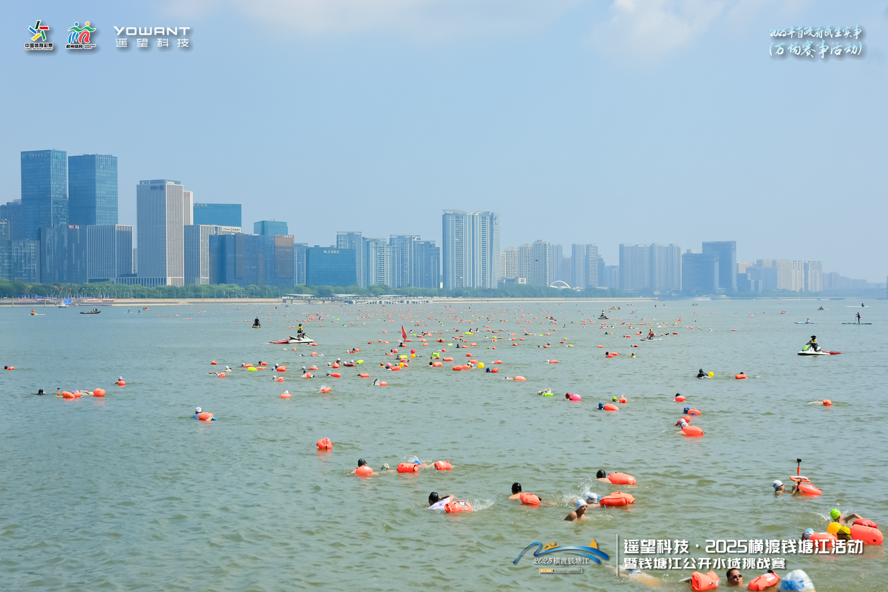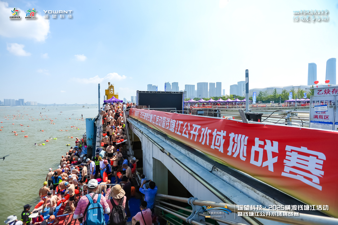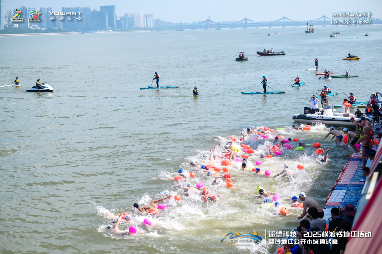 2025年8月3日上午,由浙江省游泳协会指导、杭州市体育局主办、杭州市体育总会承办、杭州市水上救生协会执行的遥望科技·2025横渡钱塘江活动暨钱塘江公开水域挑战赛,在杭州滨江区奥体中心码头与上城区城市阳台之间的壮阔江面燃情启幕。来自全国各地以及日本、法国等国家的参赛选手劈波斩浪,由南向北横渡钱塘江,以昂扬之姿续写全民健身传奇。