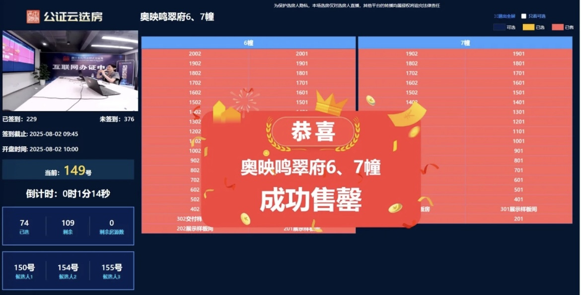 从线上选房来看,全程用时大概2个小时,高总价、大户型集中的6号楼率先被选完。