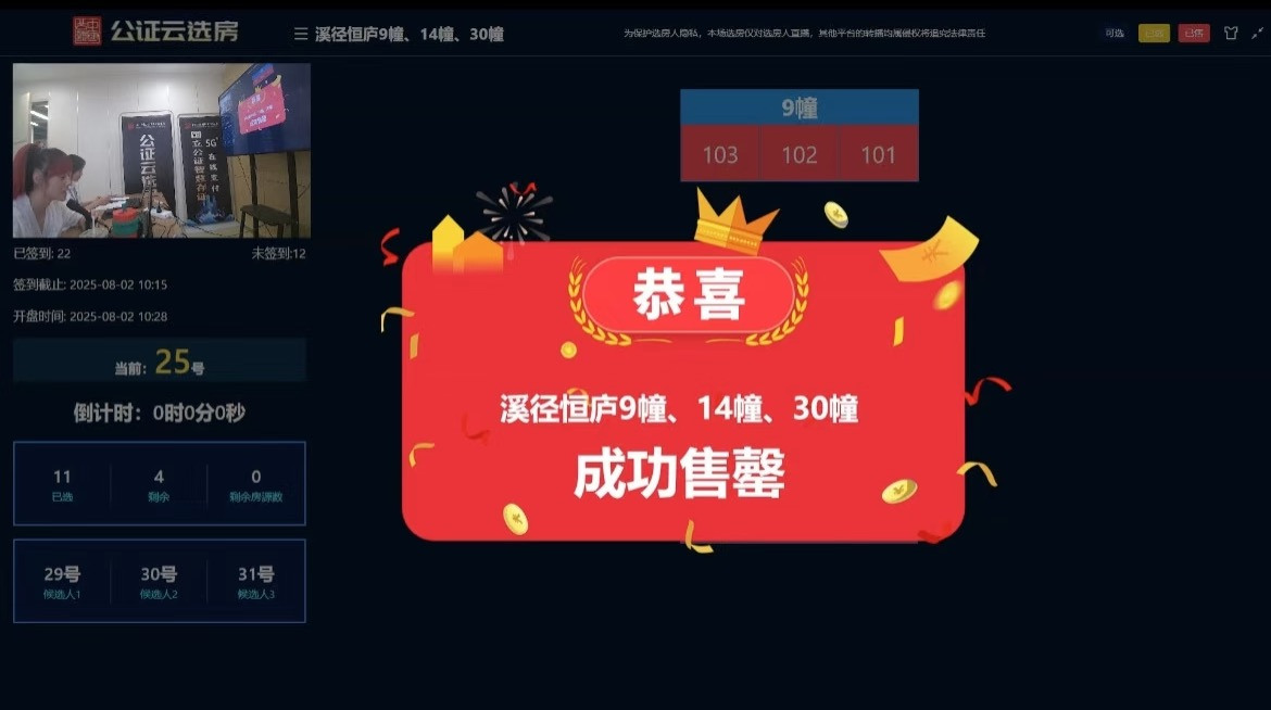 结果显示,排屋有34组家庭报名,中签率32.35%,线上选房至25号售罄;叠墅81组报名,中签率49.38%,线上选房基本卖得差不多,首开还剩下6套。