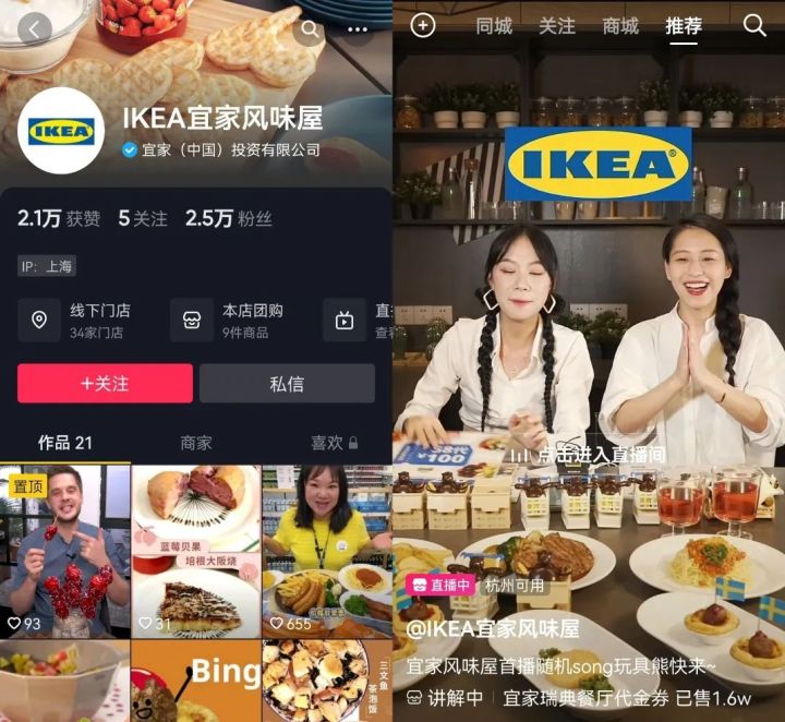 宜家做直播并不算新鲜事,只是这次的直播间却不太一样。宜家在淘宝、微信小程序和抖音,直播的都是家具相关内容,而 “IKEA宜家风味屋”则以宜家美食为主,直播间售卖的也是各类宜家餐厅美食团购。