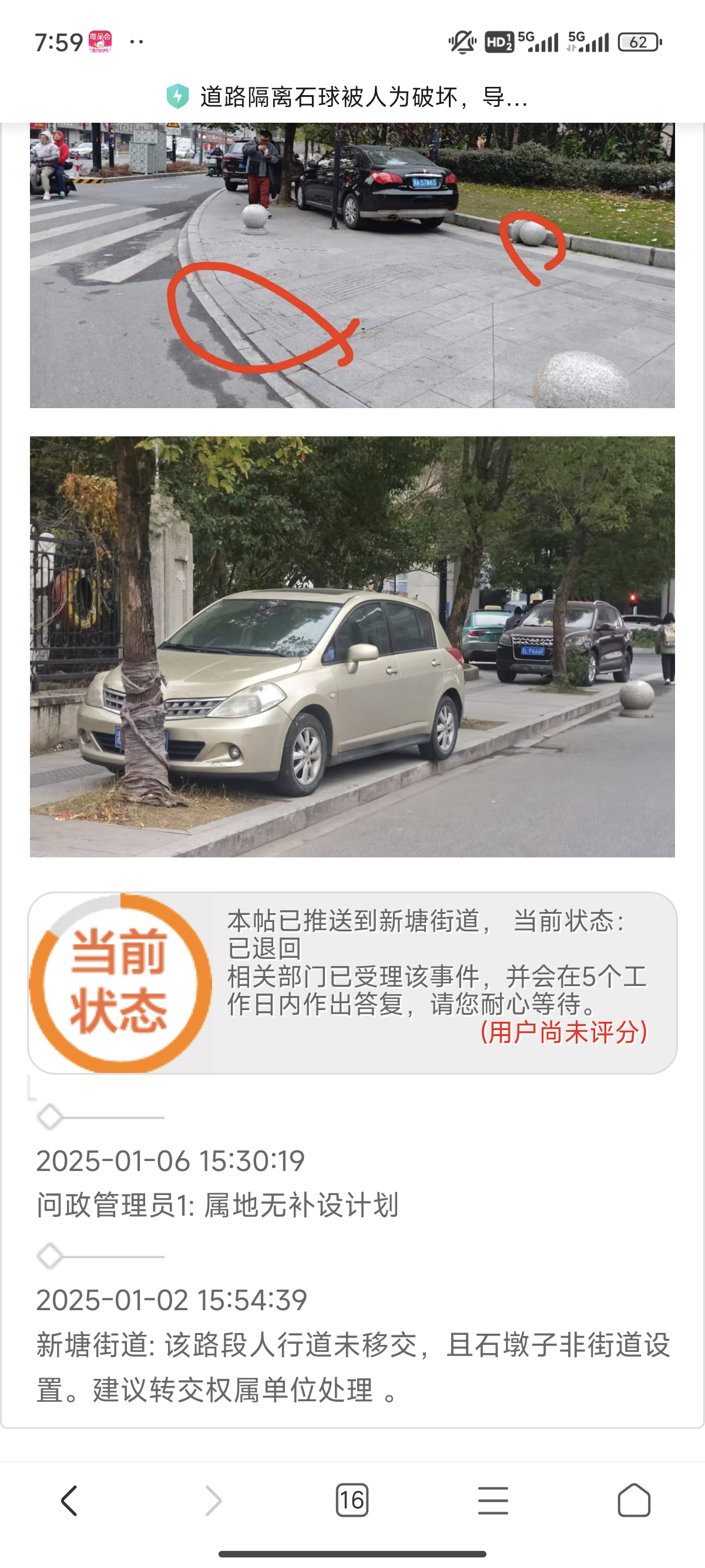 知行路紧靠姑娘桥地铁站,该站是杭州地铁5号线和绍兴轨道交通1号线的换乘站,周围有一个建筑工地和一个新交付的安置房,停车需求较大。2024年12月中旬,知行路(萧绍运河北侧-彩虹快速路)由建设单位移交由我局管理。属地中队在管理过程中发现人行道存在违停现象。由于是新交付道路,属地中队已积极对接,下步将按流程申请将该路段加入违停系统。在此期间,已安排人员对违停车辆张贴违法停车《温馨告知单》,告知车主文明停车,不得随意占用人行道影响通行。后续将对继续违停在知行路及彩虹快速路的违停车辆进行贴单。此外,反映中知行路石球松动问题现已联系建设单位交投集团进行修复。