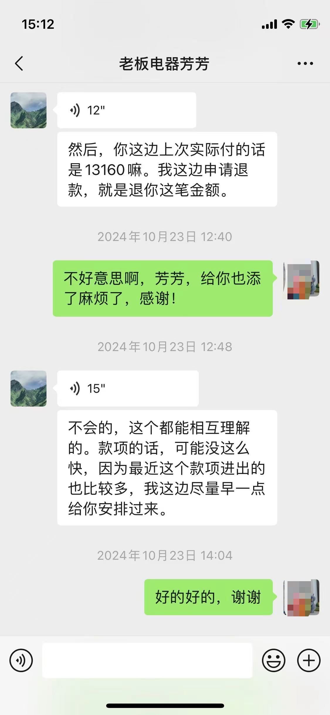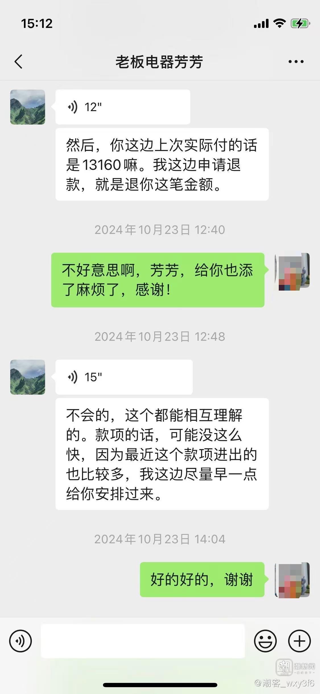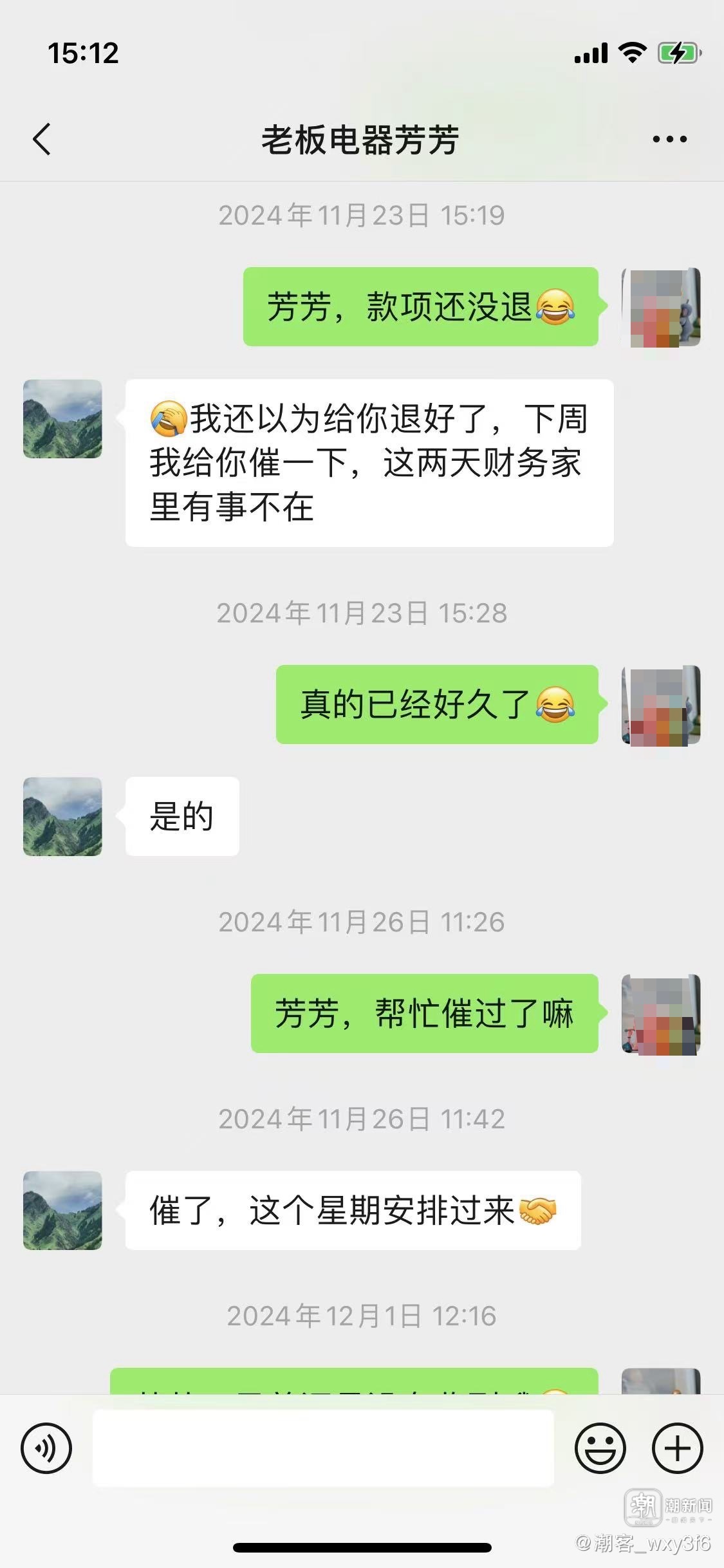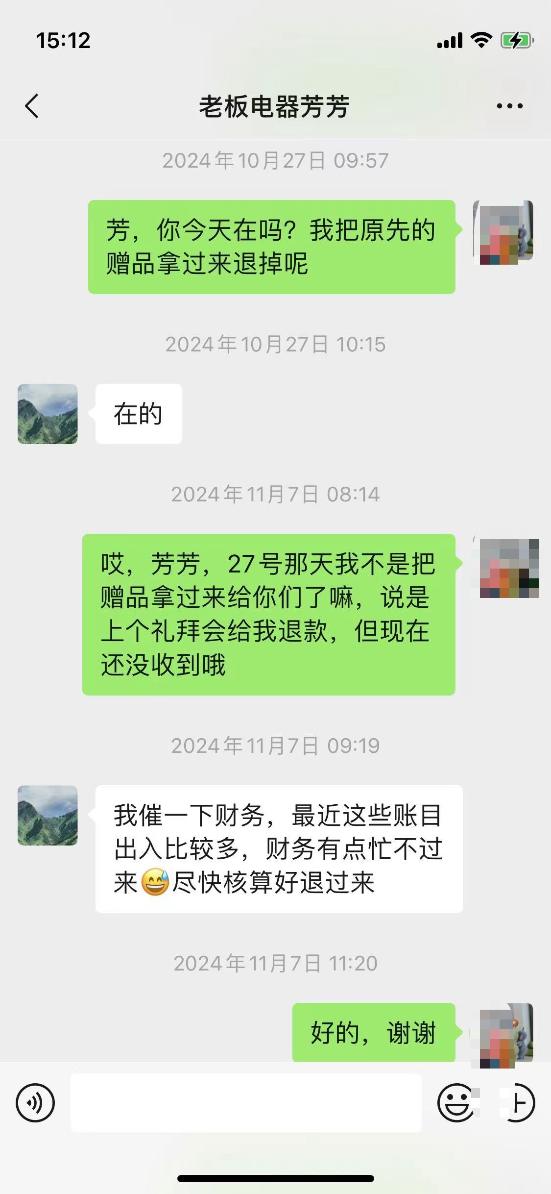 2024年6月9日,本人于杭州市钱塘区恒大建材市场C馆老板电器门店购买烟灶、消毒柜、蒸烤箱,共支付13160元。后因国补政策推行,因上述产品市场价下浮较大,经与门店协商,承诺最晚将于11月初全额退还货款。但之后,门店老板跑路失联,时至今日,未退还任何货款。