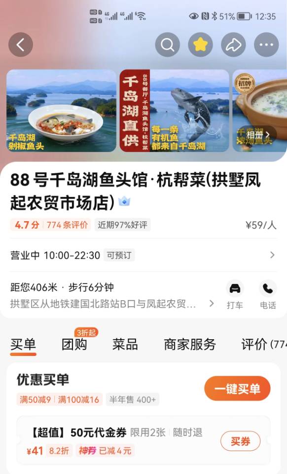 我们在杭州建国北路地铁站A口农贸市场边上开了一家88号千岛湖鱼头馆,我们是千岛湖人,原先在千岛湖开了20年餐馆,鱼头口味地道,顾客反馈很好!但是位置有点偏,流量起不来,目前还是亏损状态,我们希望媒体帮忙推介一下,谢谢!
