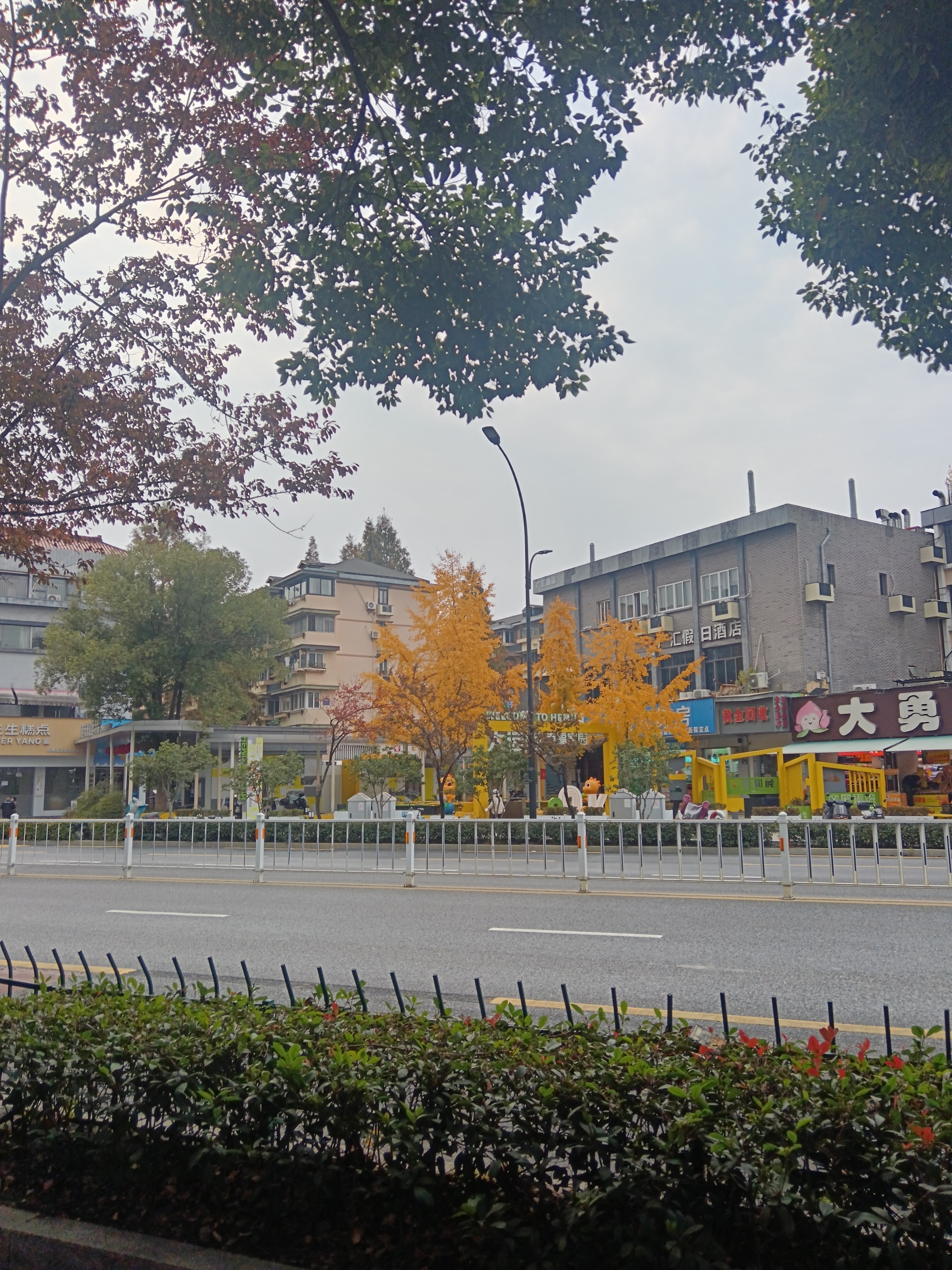 阴天的秋色滤镜绝了,黄叶配老街,随手一拍都是故事感~