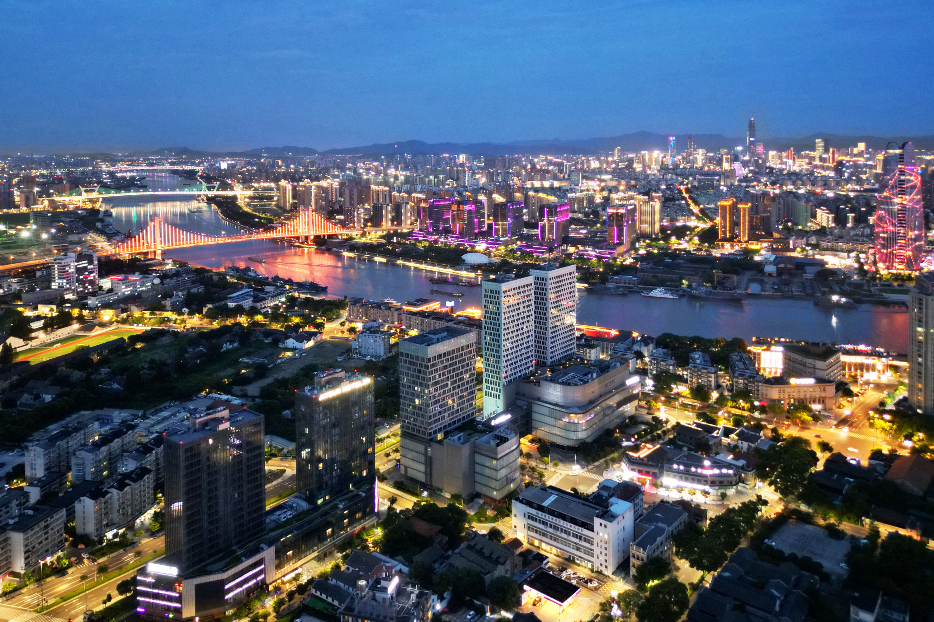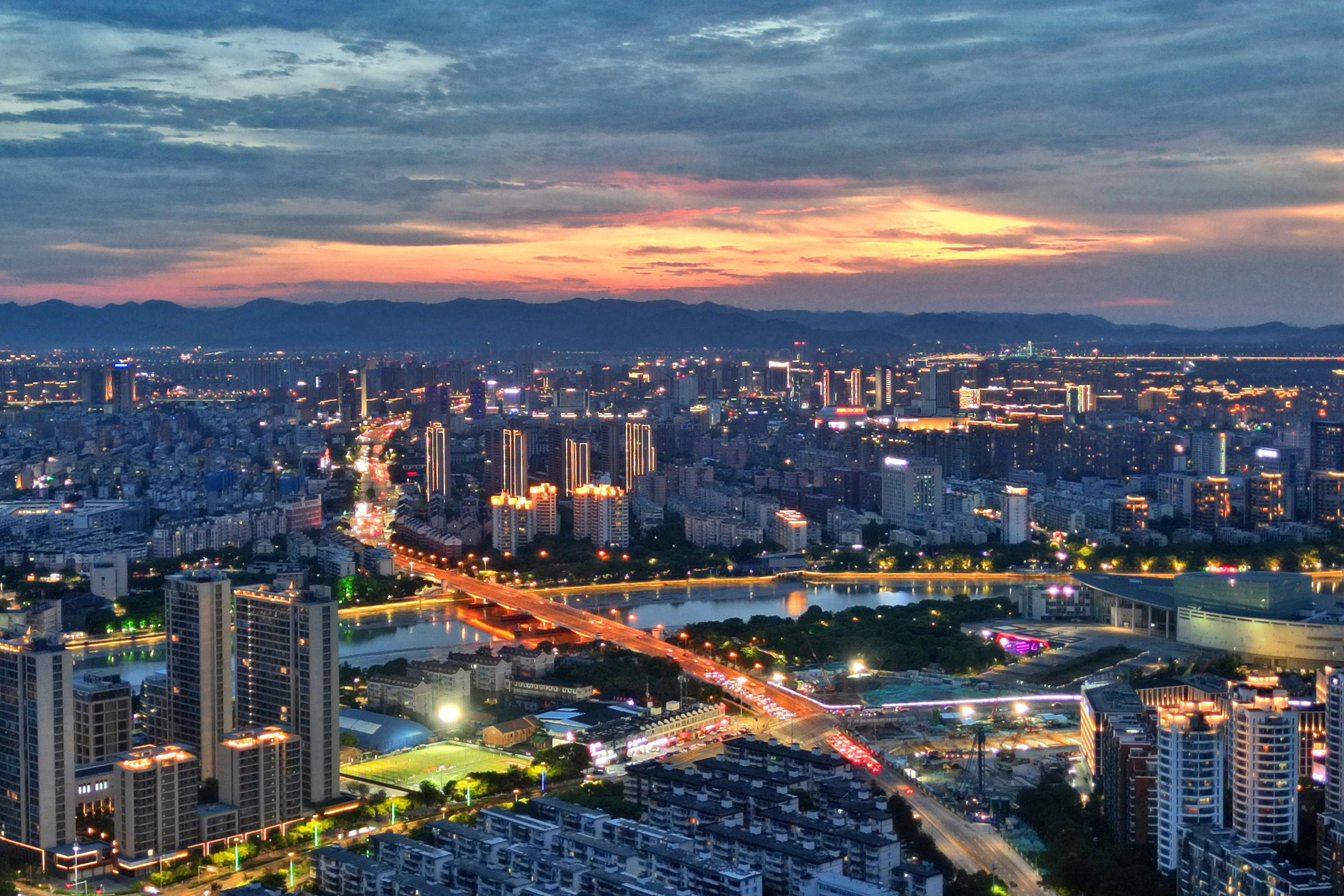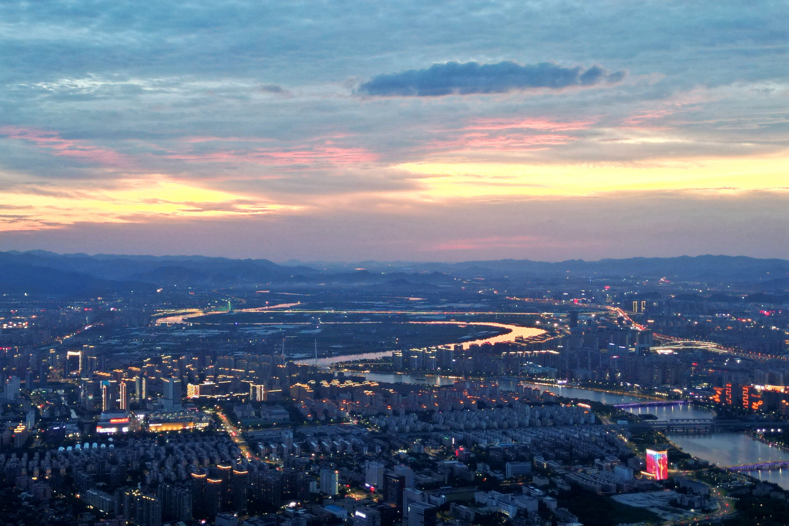 《云飞霞红,金龙卧姚江》近来,甬城“高炎值”天气活跃,热情似火,天空亦变得丰富多彩,或蓝天碧空,或大朵云彩,或电闪雷鸣,太阳还不时戴上光环。昨天傍晚时分,绚丽晚霞中火烧云站到了C位,将姚江渲染得金黄,宛如一条金龙静卧四明大地。