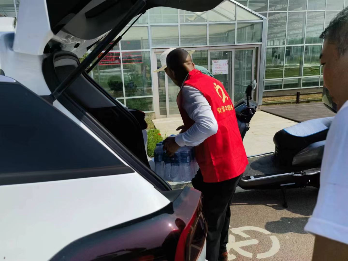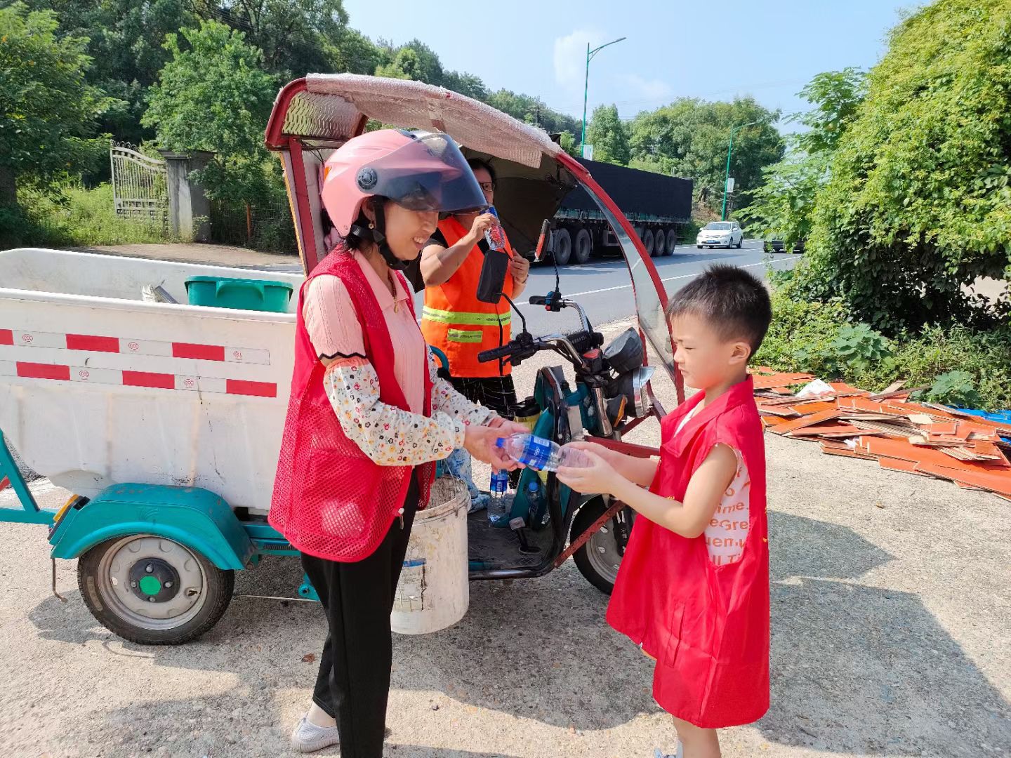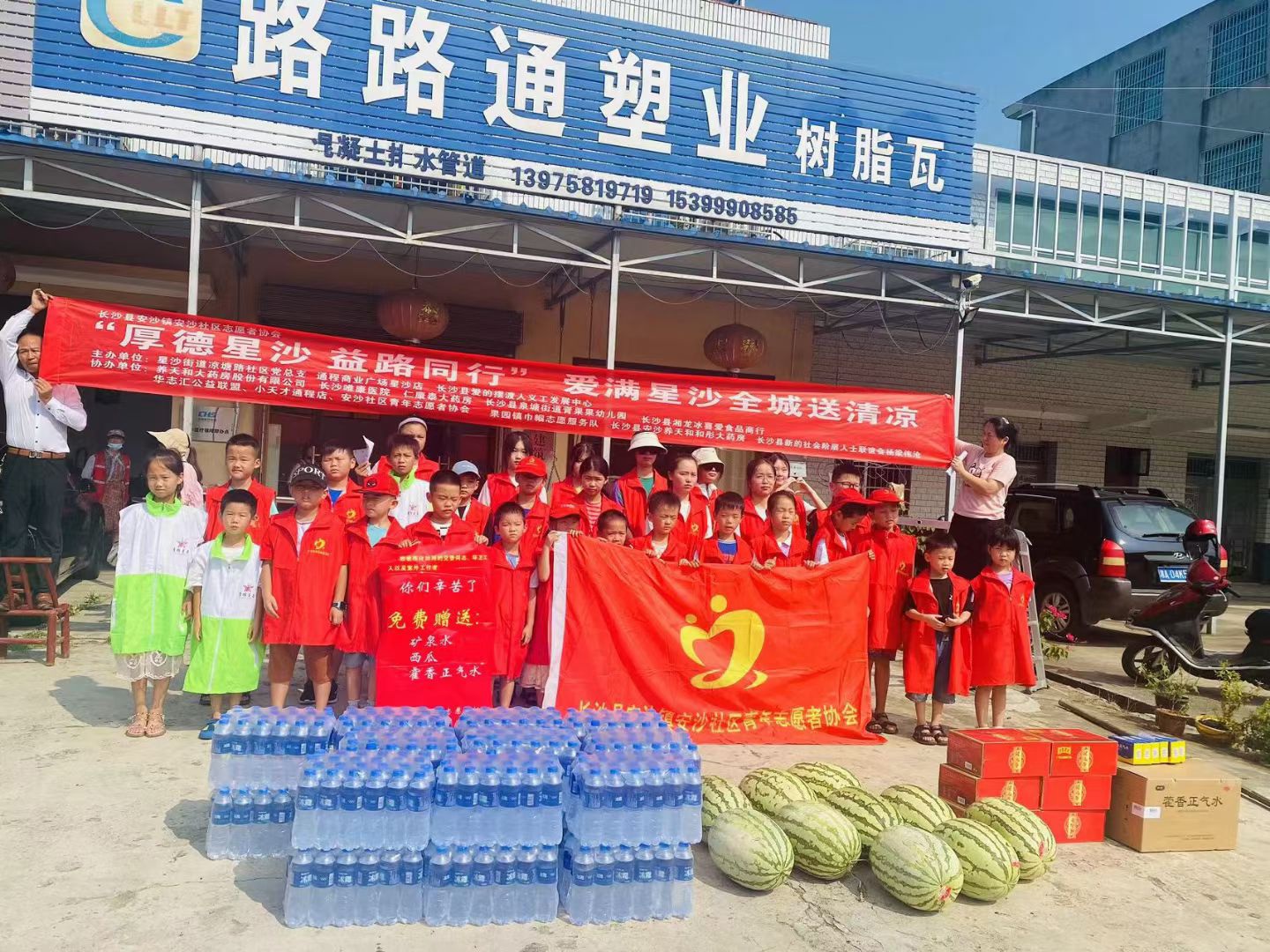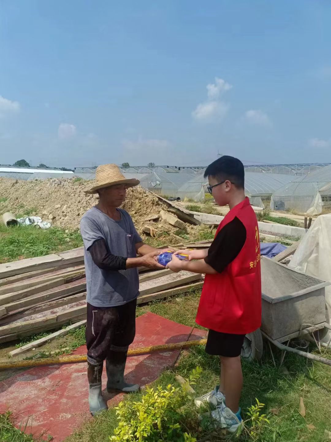 【“厚德星沙 益路同行” 长沙县安沙镇:爱心牵手送清凉】(通讯员刘露 梁桂芳)长沙县爱的摆渡人义工发展中心联合通程商业广场星沙店等多家爱心单位共同发起的“厚德星沙 益路同行”长沙县全城送清凉大型志愿活动自7月9日正式启动以来,除了广大中小学生踊跃报名参与,也吸引了一大批爱心商企纷纷加入进来。8月16日,长沙县安沙镇安沙社区青年志愿者协会在长沙县新的社会阶层人士联谊会杨梁伟沧先生和长沙县安沙养天和和彤大药房支持下开展了安沙镇送清凉活动。 上午9点,近40名志愿者在杨胜高会长地带领下,携带着西瓜、藿香正气水与瓶装矿泉水送到了周边高温下辛劳工作的环卫工人、建筑工人和交通警察等户外工作者手里,向他们致以崇高的敬意。接过矿泉水和防暑物资的户外工作者们幸福感爆棚,一个个都露出了幸福的笑容。环卫工人鲁菊高兴地说:“谢谢你们!高温让我们的体力和耐力备受考验,今天我们能得到来自社会的关爱和尊重,真真切切让我们感受到了生活在安沙的幸福。以后我们会以更加饱满的热情地投入到工作中,为创造美丽长沙县贡献出自己的力量。” “这个世界上,从来没有什么岁月静好,只不过有人在替我们负重前行。高温炙烤下,有了环卫工人的坚守才有了干净整洁的环境;有了交警叔叔的坚守才有了畅通的交通。环卫工人们天天都要冒着炎热打扫卫生,交警叔叔也一直在烈日下坚持路面巡逻和指挥交通,他们真的都好辛苦啊!我们一定要养成保护环境和遵守交通规则的好习惯。”参加完活动后,张钰轩同学深有感触地表示。
