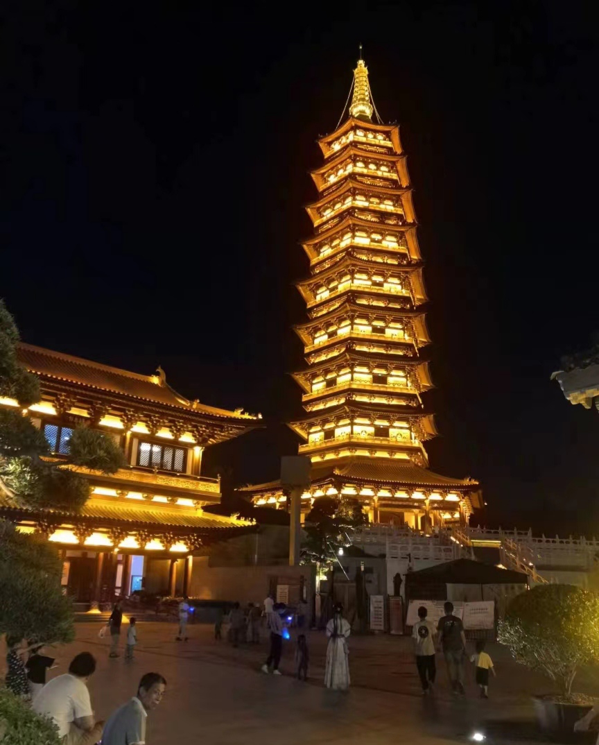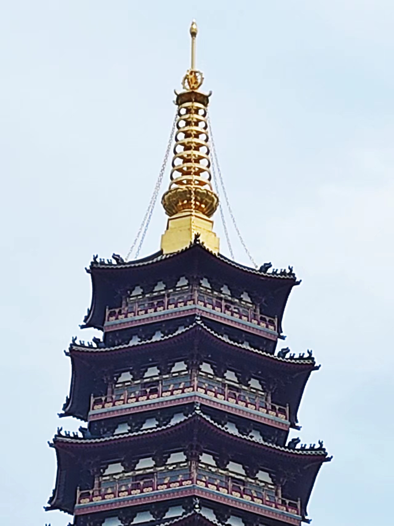 万佛晨光 ——古婺十景之三 刘瑞苑 晨曦渐露,唤醒了沉睡的大地和万佛塔。那挺拔巍峨的身姿,壮观又精美绝伦。 转瞬间,一轮红日喷薄而出 ,金光四射。顿时万道佛光迎着璀璨的阳光交织一起,散发出神圣吉祥的光芒。佛光照耀婺州大地,护佑金华百姓平安中熠熠生辉。 金华万佛塔堪称浙江第一塔,是老金华历史文化的地标性建筑。如果说婺州古城是艘船,万佛塔就是船上的桅杆。塔重建后高 99.99米,共17层,1-13层有小型电梯,便于游客上下。十五层安装祈福大钟。全塔设计布局3700多块佛像雕砖,以及7000多个佛龛,再现昔日万佛之盛况。新万佛塔还修建了1900平方米地宫,今后用予文物精品的复制品集中陈列展示。 万佛塔始建于北宋嘉裕七年(1062)至治平元年(1064)年间,原址位于市区塔下寺的山坡上,九层八角楼阁式砖木结构建筑,初名“密印寺塔”,因塔身外壁上半部的每块砖上雕有不同精美如来佛像数以万计,一排排地结集跏跌在莲台上,故称万佛塔。据资料记载,万佛塔排在南京“大报恩寺塔”之后,故称江南第二塔。 1942年日军侵略中国,当时的驻金华部队借口该塔目标过大,易被日军飞机发现被轰炸,就将该塔拆毁半截,致使战乱后残塔成废墟。 2014年金华启动万佛塔重建工程,因无法在原址恢复,便向东南方下移至东市街东侧高山头山脚下圈地重建。 2017年新万佛塔结顶,它可望成为国内复建宋代古塔中的精品杰作。佛塔的前世今生尽展眼前,它盛世重生,盛装惊艳世人。万佛塔是一座艺术宝库和建筑殿堂的风采。 万佛塔现位于金华府清风龙头处(现万佛塔公园)紧邻古子城,公园总占地面积102.2亩,总建筑面积约2.8万平方米,与燕尾洲、五百滩等完美融入三江六岸景观带,成为浙中生态廊道和现代化都市区文化标杆。 当我们踏进万佛塔公园,入口处典雅大方,“万佛塔公园“五个大字是中国国家博物馆馆长吕章申先生亲笔题字。万佛塔身上的汉白玉照壁上镌刻着一部心经是采用曾任中国佛教协会会长赵朴初先生的书法作品。 万佛塔内部装饰是中国环境艺术设计专业的创造人及学术带头人张绮曼团队为它操刀。他们曾是北京人民大会堂国宾厅、民族文化宫等建筑室内设计者。复建的万佛塔塔身为外九层,内八层的六边飞檐造型。主体为钢混结构,采用藻井、月梁、壁雕等宋代建筑造型元素。同时融合了金华本地的铜雕、木雕等工艺。展现古婺文化精髓,体现“共建金华”理念,还请来了中国古建泰斗梁思成的关门弟子郭黛姮亲手操刀设计,她是杭州雷峰塔重建工程的总设计师。 复建后的万佛塔从地宫开始至顶层,主要展现佛教文化和金华元素,打造成“礼佛空间,观禅圣地”。其中壁画和浮雕多数出自中国美术学院和中央美术学院教授之手。万佛塔每个楼层都有不同的文化主题,1957年万佛塔地宫意外发现后出土文物183件,其中最精美的“五代鎏金铜观音造像”堪称国宝,列为国家一级文物。 万佛塔地宫整体格局呈3个围圆形态,外圆环绕有4幅罗汉木雕以及1幅伎乐天和阿育王铜浮雕。中圈由“娑婆三圣”佛造像以及5幅佛教故事。壁画描述了释迦牟尼从出生到涅槃一生的经历。内圈有2幅铜浮雕,分别是世尊涅槃图和双龙图浮雕。顶部环绕一圈飞天女神壁画。沿墙展览了许多地宫出土的文物如:铜麒麟、铜菩提树形七佛像、銮金铜阿育王塔、铜弥勒佛坐像、持瓶观音等形象逼真,很是感叹古代人的智慧和能工巧匠想象力。值得一提的是浮雕里融入了八咏楼、尖峰山和万佛塔等金华元素。双龙图浮雕中心双龙团形,这也对应了金华的双龙洞,也是保佑金华百姓的青龙和黄龙。据记载塔下的密印寺,它也是蒲松龄笔下《聂小倩》故事里兰若寺的原型。地宫里庄严典雅,富丽堂皇,令人目不暇接。 万佛塔一层为释迦牟尼佛的展示空间,内圈由释迦牟尼造像以及3幅铜浮雕(水月观音铜浮雕、佛陀十大弟子铜浮雕)所构成,外圈共有6幅佛本生故事壁画,讲述的是佛陀在世时的一些重大善行。由中国美术学院教授团队创作。在一层装饰中,6根沥粉贴金柱也是一大看点。 万佛塔2层是大慈弥勒菩萨,3层大悲观音菩萨,4层大愿地藏菩萨,5层大智文殊菩萨,6层大行普贤菩萨,7层西方三圣,8层西方极乐世界,9层东方三圣,10层东方净琉璃世界,11层法华世界,12层华严世界,13层华严三圣,15层祈福钟,17层金华佛光。 从地宫到13层可乘电梯直上,从13层步行到15层,这里悬挂的巨大青铜钟是万佛塔的镇塔大钟,总重11.8吨,钟高3.6米,钟底裙边直径2.2米,钟面主体有铭文和《心经》。这口精致、美观、硕大又充满佛教色彩的大钟,是由南京晨光公司制造。他们曾为香港和澳门回归制造过赠送的紫荆花、莲花雕塑。这口祈福大钟曾在2020年敲响了新年钟声,宏亮的钟声震撼着婺州大地,响彻天空,为金华人民带来好运。在15层外围一圈有阳台,这里是金华城的制高点,登高远眺,可以360度俯瞰整个金华老城及拓展的新区。只见双溪如带,南山如屏,行人似蚁。近处一幢憧楼屋排列有序,美观整齐。宏济桥上车水马龙,川流不息。远处的中国婺剧院清晰可见,象只展翅的白天鹅亭亭玉立在芳草萋萋的燕尾洲公园里。八咏楼(彩虹桥)横跨婺城南北在晨光下呈现。婺江两岸柳树成行,绿化带上密林扶疏,婺江之水波光粼粼,八咏桥五彩斑斓如游动的板凳龙,沿岸的座座码头诉说着昔日的繁荣和兴旺。 每当夜幕落下,
