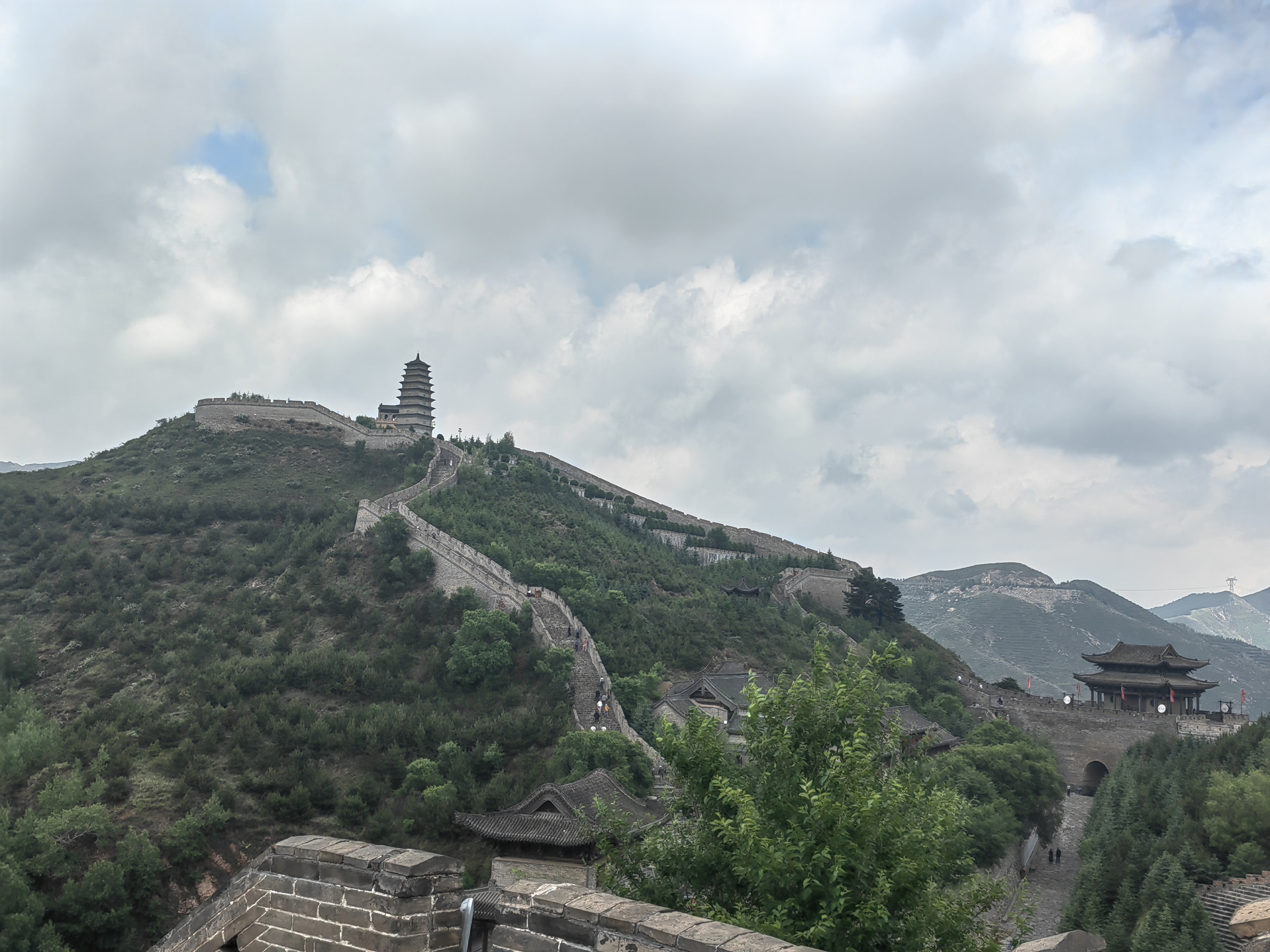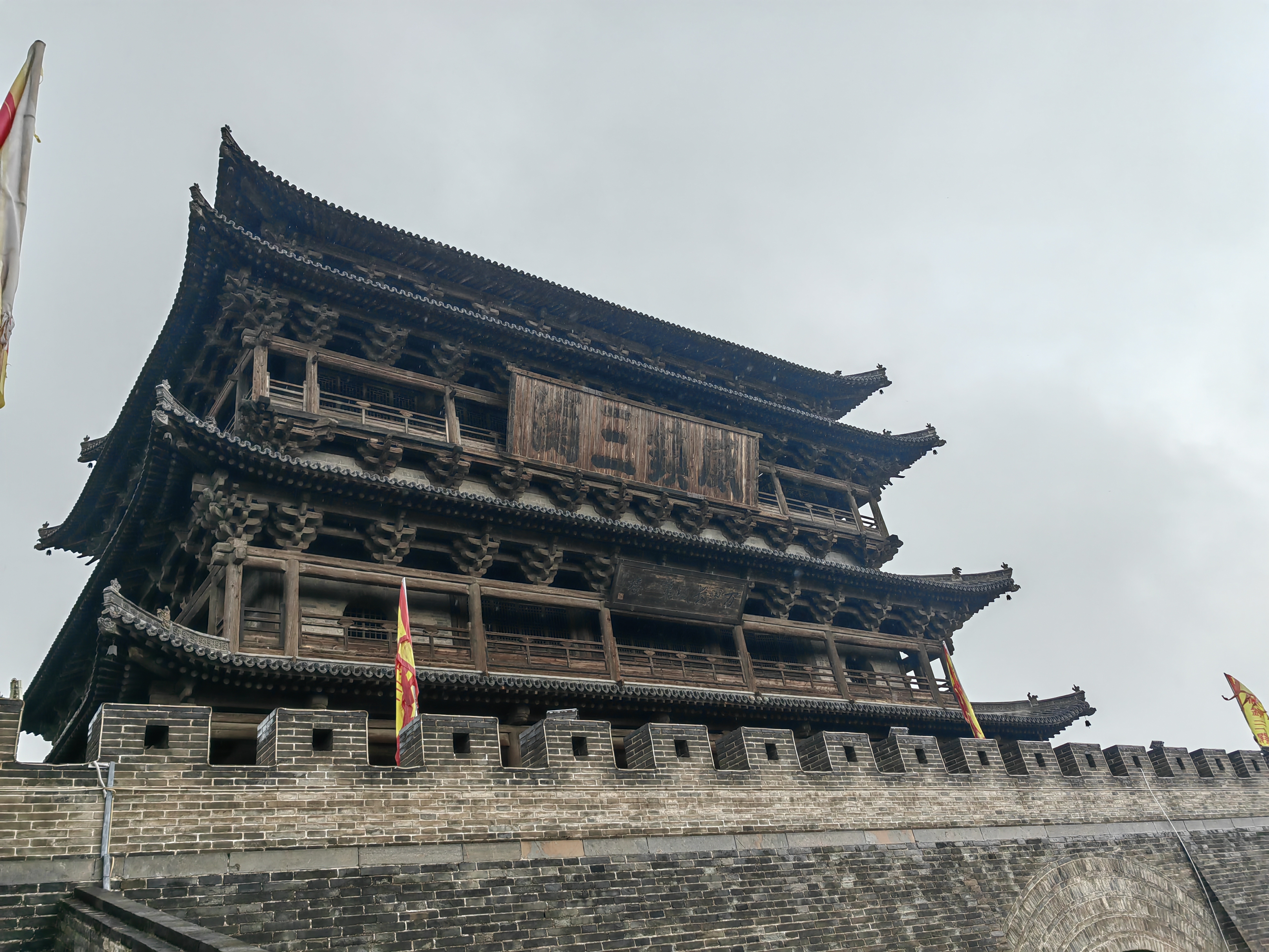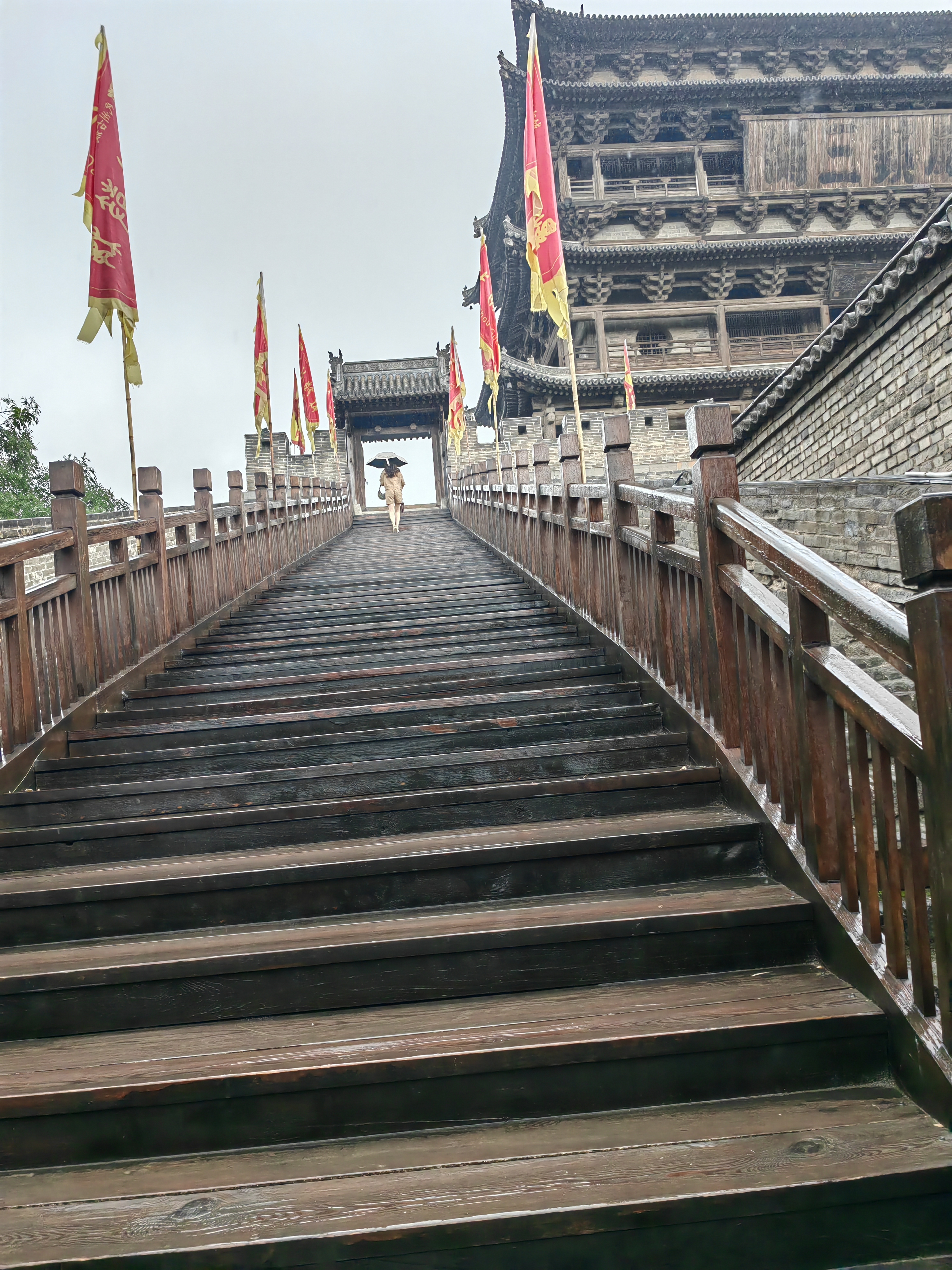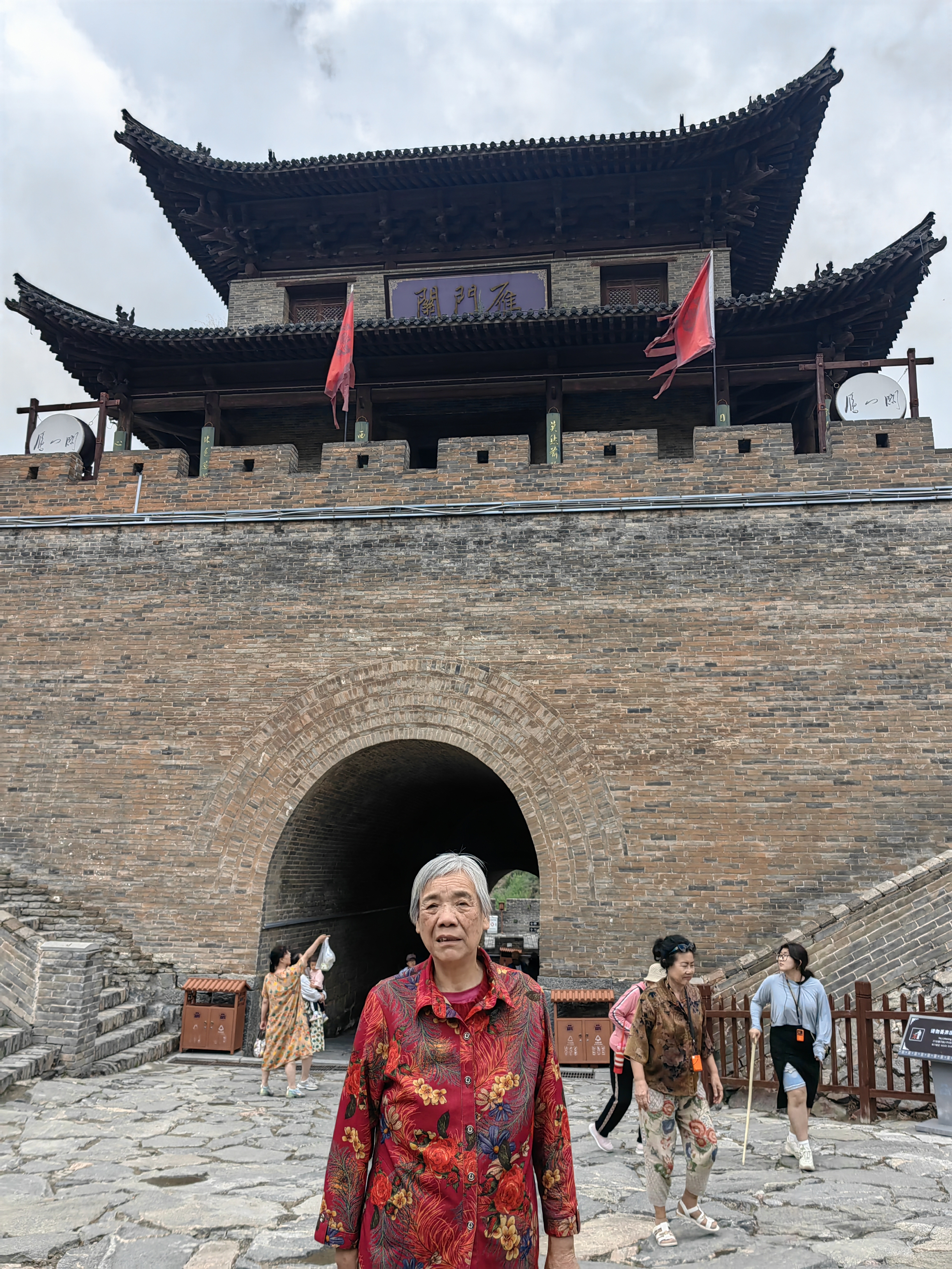 到代州去(三)代州古城 黄岚2023.7.9 在濛濛细雨中,我终于来到了心心念的代州古城。到了这里才知道,这个“代县”只是当初汉时汉文帝刘恒代国的一个角落头,并非代国的都城。公元前221年,秦统一六国,改设郡县,以郡统县。初分全国为三十六郡,太原郡为其中之一,辖三十七县,治所晋阳。代县始建县,名广武县,属太原郡。我这次来代县,是冲着代州古城来的,想当然地以为这古城就是刘恒的根据地。然而这是个美丽的错误。汉高祖十一年(前196),刘邦在亲征平定代地诸侯陈豨的叛乱后,册立8岁的第四子刘恒为代王,都于晋阳(今山西太原),代县时为广武县属代国管辖。至隋开皇五年(585),设代州总管府,辖代州、忻州、蔚州、朔州四州。开皇十八年,以广武县名犯太子杨广讳,改称雁门县。民国元年,废代州,称代县,直属山西省。 代州古城就在现在的代县。许多人不明白,我为什么要来看代州古城。印象中的代地,是边塞之地。当年薄姬带着刘恒来到代地,实被遗忘在历史的角落。谁又能知道,被刘邦轻视的薄姬与她的儿子汉文帝,开启“文景之治”,竟又让汉家王朝绵延几百年。 的确,代县是雁门关内最后的一座县城。出了代县就是塞外,当年的王昭君就是从这里走出,通过雁门关,离开汉家来到胡地成为匈奴单于的妻子,那时的胡地,大致相当于现在的内蒙。我大胆猜测,王昭君为何有“落雁”这美称,恐怕也是个美丽的错误,最有可能是从雁门关出而称为“落雁门”而来。 代县曾是个边塞县城,是重要的北陲政治要地、军事强藩、商埠重镇,具较高的历史价值。而今代州古城所留古迹不多,城墙也没了,除了文庙武庙外,就一座边靖楼,让人窥见曾经雄健的古城风貌。 边靖楼在代州古城的中心区域,意为靖边安民,建于明洪武年间,因其具有古代戍兵警民的作用,因此又称“谯楼”与“鼓楼”。明成化年间毁于火灾后重建,大致形成如今我们看到的规模。当地人多称其为鼓楼,连小吃也是鼓楼附近的好吃。 登上靖边楼,雨亦小了。望远处,风云翻滚。其楼高四十余米,三层四檐,为砖木结构,巨木梁架,代县县城的建筑不能高过靖边楼,这楼显得非常雄伟,高大。南面楼上悬有“声闻四达”横匾,尺寸很大,高3米、长9米,为清雍正十一年(公元1733年)山西分守雁平道汤豫诚所立,号称亚洲第一木质巨匾。北面悬有“威镇三关”“万里长城第一关”两块匾额。这是我国现存最大的一座木质鼓楼,也是万里长城沿线最高大的楼式建筑,被长城专家罗哲文先生誉为“万里长城第一楼”。 楼中有一唐代石灯台,曾有唐代铭文,即使在宋代被磨,仍依稀可见。脚下的青砖上刻着“官”字,可以想见当初建筑的巨大费用与艰难。在这些千年历史见证前,我们显得多么渺小。遂作一律《靖边楼》以记录这次登楼之感: 遥望风云聚散流,雨中拾级靖边楼。 狼烟燃起传烽讯,虎旅练成驱敌酋。 威镇三关声四达,名垂八极誉千秋。 却看灯塔唐时物,曾照疆场撼九州。 在楼中存有“代县”介绍,靖边楼与雁门关是密不可分的。我们是从北门上的雁门关。从代县县城过去要经过山路十八弯,一边是山崖,一边是悬崖,对面常常开过来装煤的大卡车,让人心理上有一种压迫感。而这是已经修得很好的国道了,可想而知,以前道路是如何的险峻。 雁门关,在山西忻州代县县城以北约20公里处的雁门山中,是长城上的重要关隘,以险著称,被誉为“中华第一关”,有“天下九塞,雁门为首”之说。赵武灵王时期,为抗击边境少数民族入侵,建立了云中、雁门、代郡。后李牧奉命常驻雁门,防备匈奴。李牧(?—前229年),战国时期的赵国名将、军事家,与白起、王翦、廉颇并称“战国四大名将”。曾一战大破匈奴十余万骑,使得匈奴其后10余年不敢侵赵。后人称李牧为“奇才”,并在雁门关建有“靖边寺”,纪念其戍边保民的战功。汉朝名将卫青、霍去病、李广等都曾驰骋在雁门古塞内外,多次大败匈奴,立下汗马功劳。 我们从后腰铺驿站的游客中心换乘景区车辆前往雁门关,迎面是毛主席题写的“雁门关”三字,此是“名人壁”,有李牧、李广等名将及王昭君和亲等像。对面即杨家将群像,西侧是杨老令公为首的杨家男将,东侧是佘老太君为首的杨家女将。母亲和父亲将这组花岗岩石雕细看一遍,与他们印象中的杨家将故事一一对应,感叹着说原来这里就是他们主战场,他们都曾在此大显身手,为国立功,从各种小说戏曲中也能感受到千百年来人们对他们的崇敬与喜爱。随后我们就到了明月楼,这也是进景区的检票口。这是进入雁门关的第一道关卡,在古时边疆关隘中常有明月楼,是人们借望月来思故乡之意。 穿过民俗村与边贸街,我们来到了北门——雁门关。雁门关有东、西二门,都是巨砖叠砌,过雁穿云,气度轩昂,门额分别雕嵌“天险”(东)、“地利”(西)二匾。北门未建楼顶,门额嵌镶一方石匾,书曰“雁门关”三个大字,左右嵌镶砖刻对联一副:“三关冲要无双地,九寨尊崇第一关。”父亲在此门前留影,突然也有了“一夫当关、万夫莫开”的豪情。 往前即南北方向的地利门,上建有宁边楼,穿过此门,发现楼的另一边挂着“雁门关”三字匾额,突然有种穿越历史之感。为了增加来犯敌人的难度,关前道路特意做成斜坡。我们走上城楼,攀登西侧的长城。这里的长城始建于秦始皇时,最后是明长城,待清兵入关,长城也失去了此前的防御意义