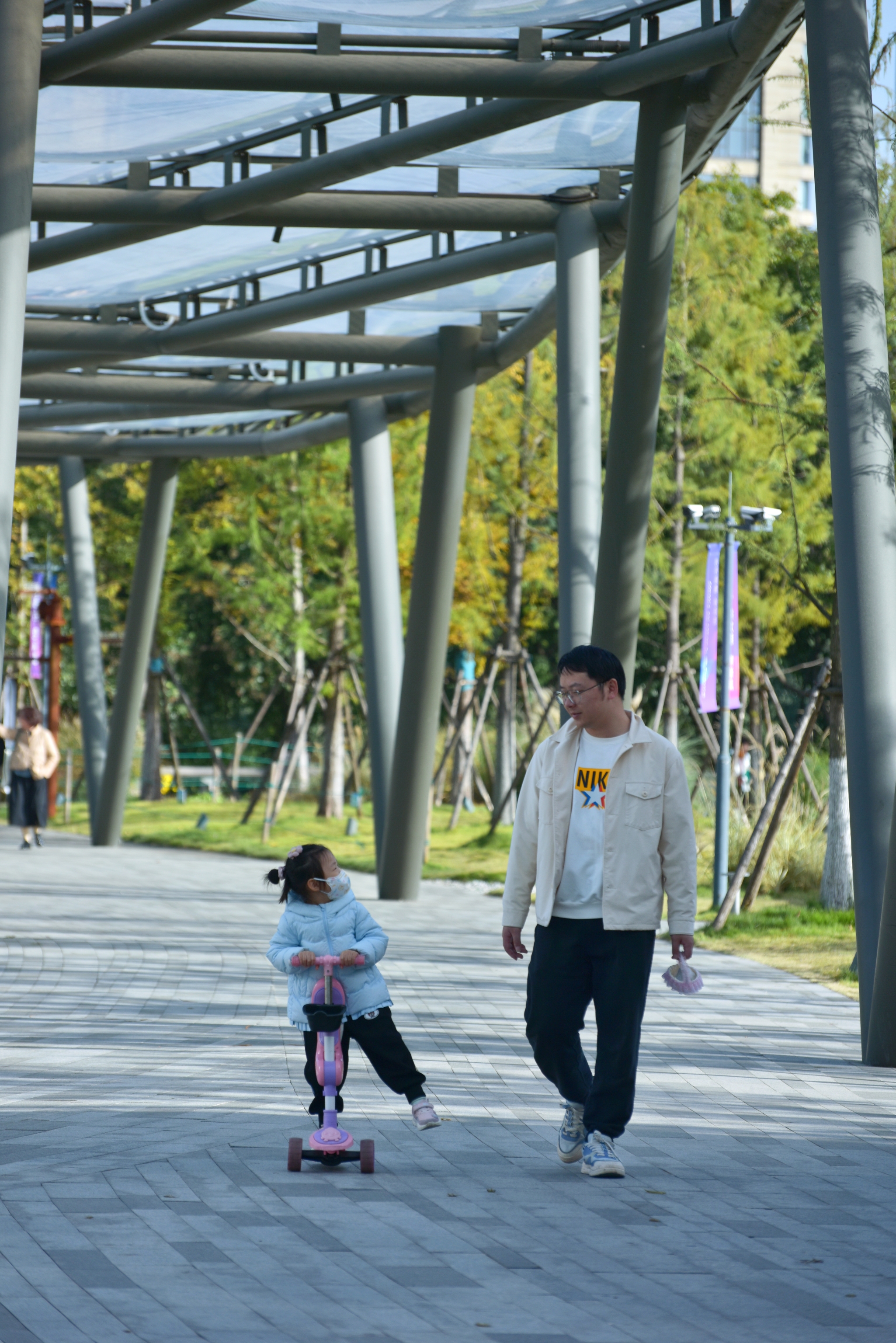 午后的小河公园,乌桕树转红了,河边芦苇闪闪发亮。