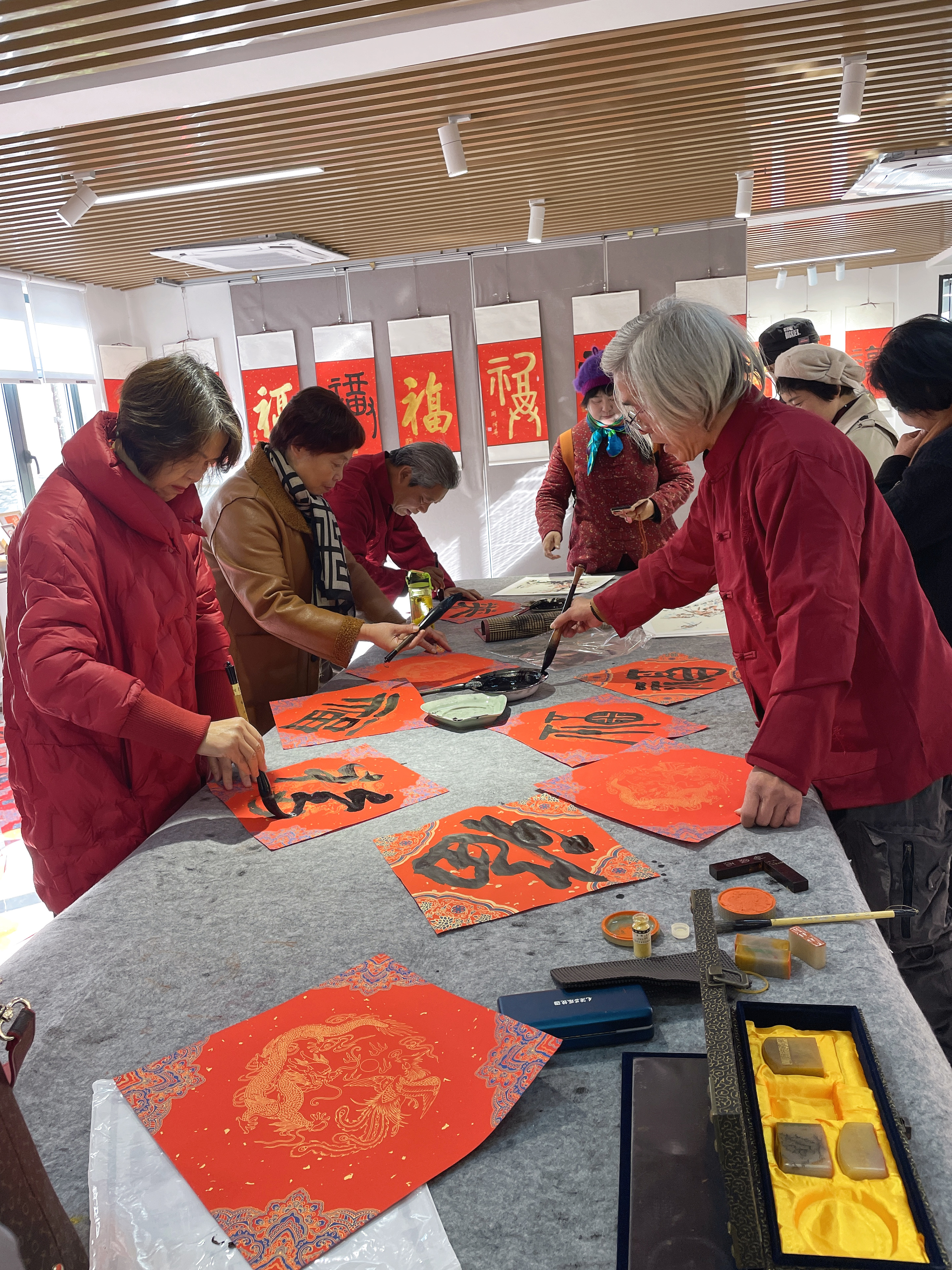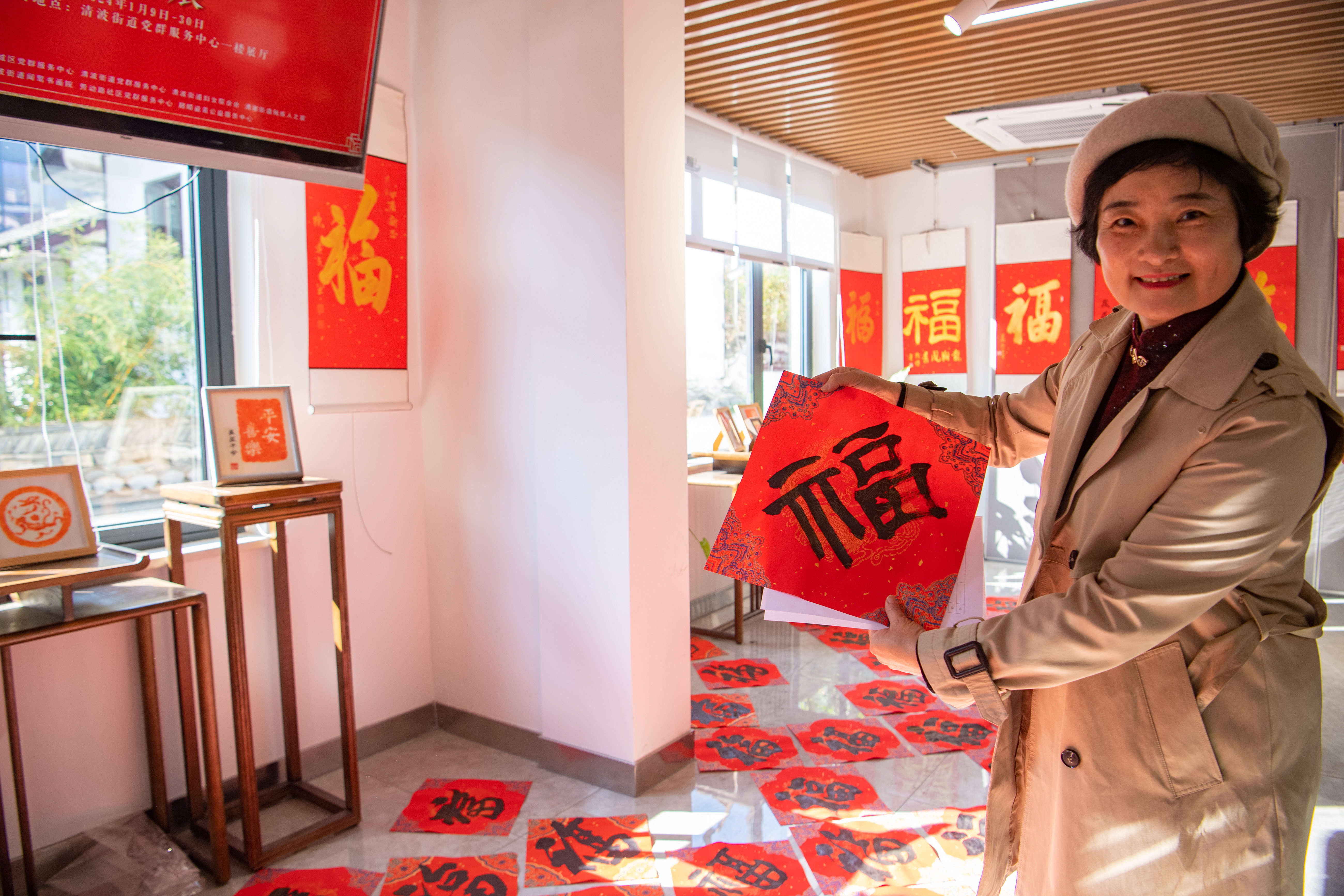 昨日上午,“百福迎新春”展在清波党群服务中心开幕了,现场一片红火,感觉掉福海里了。