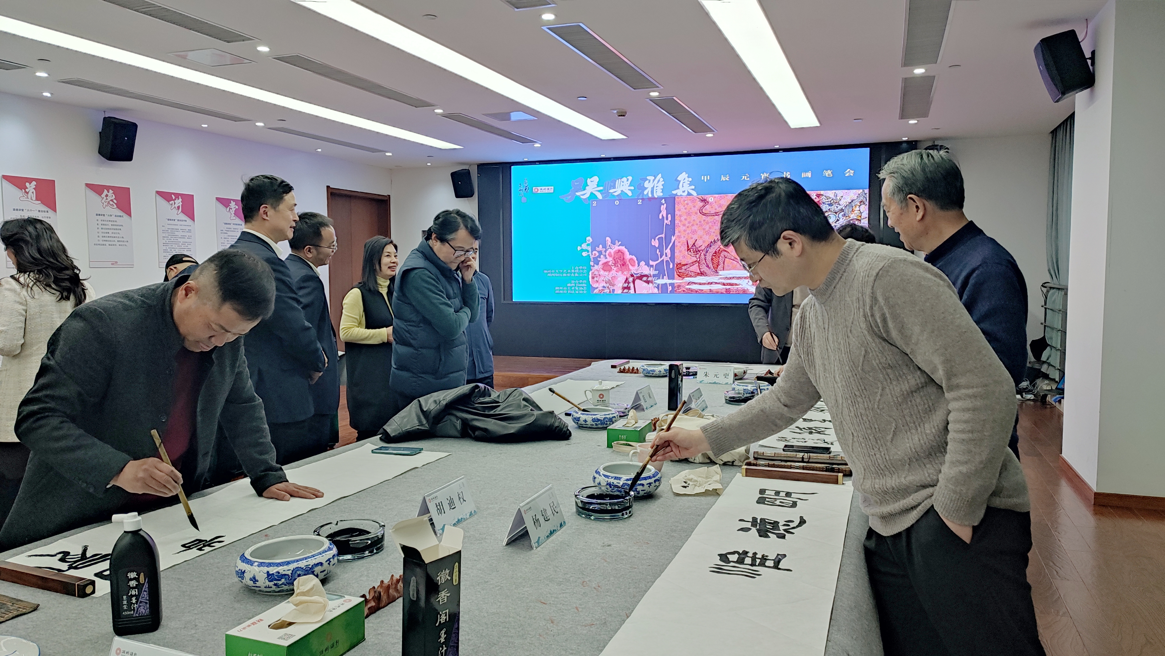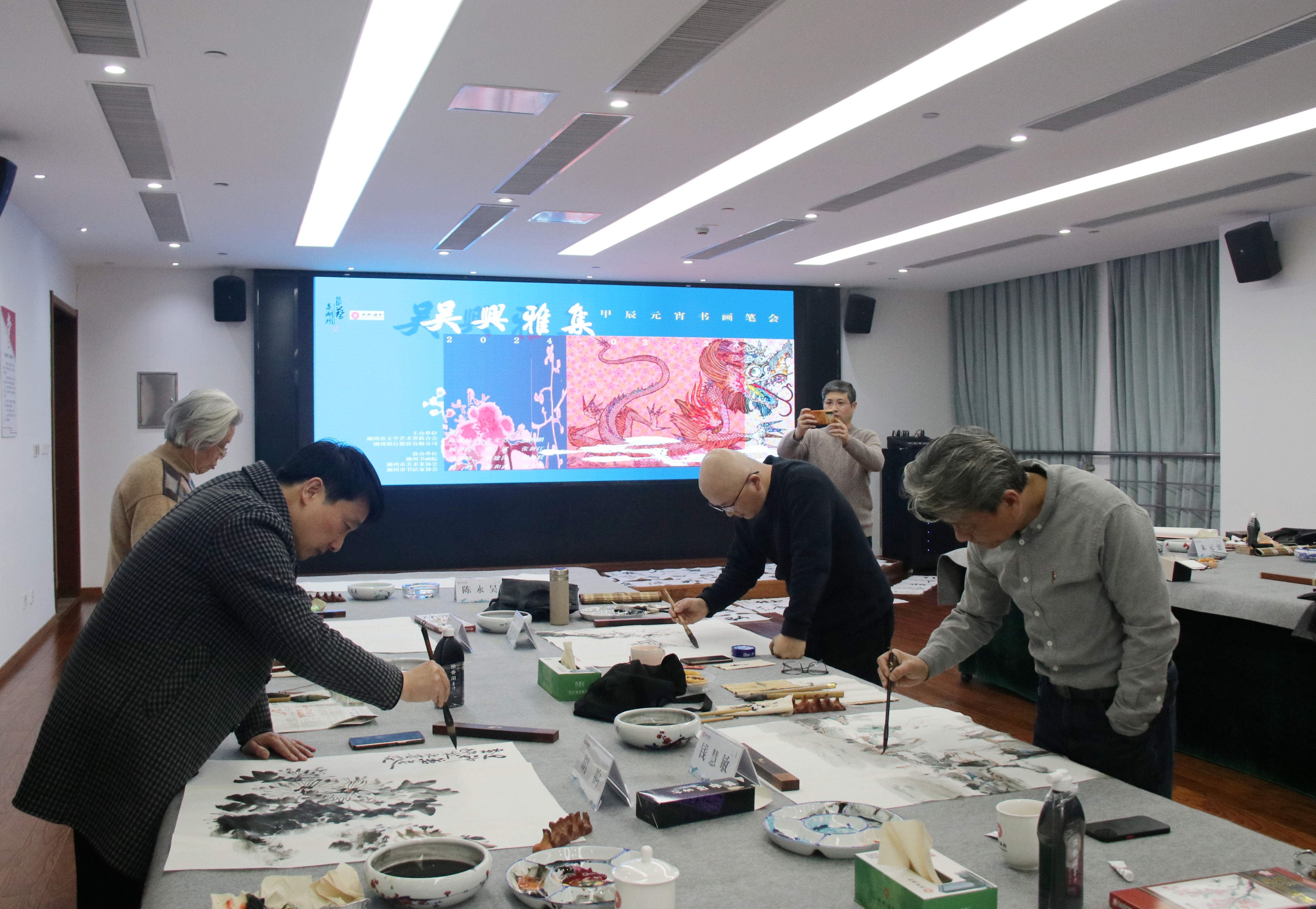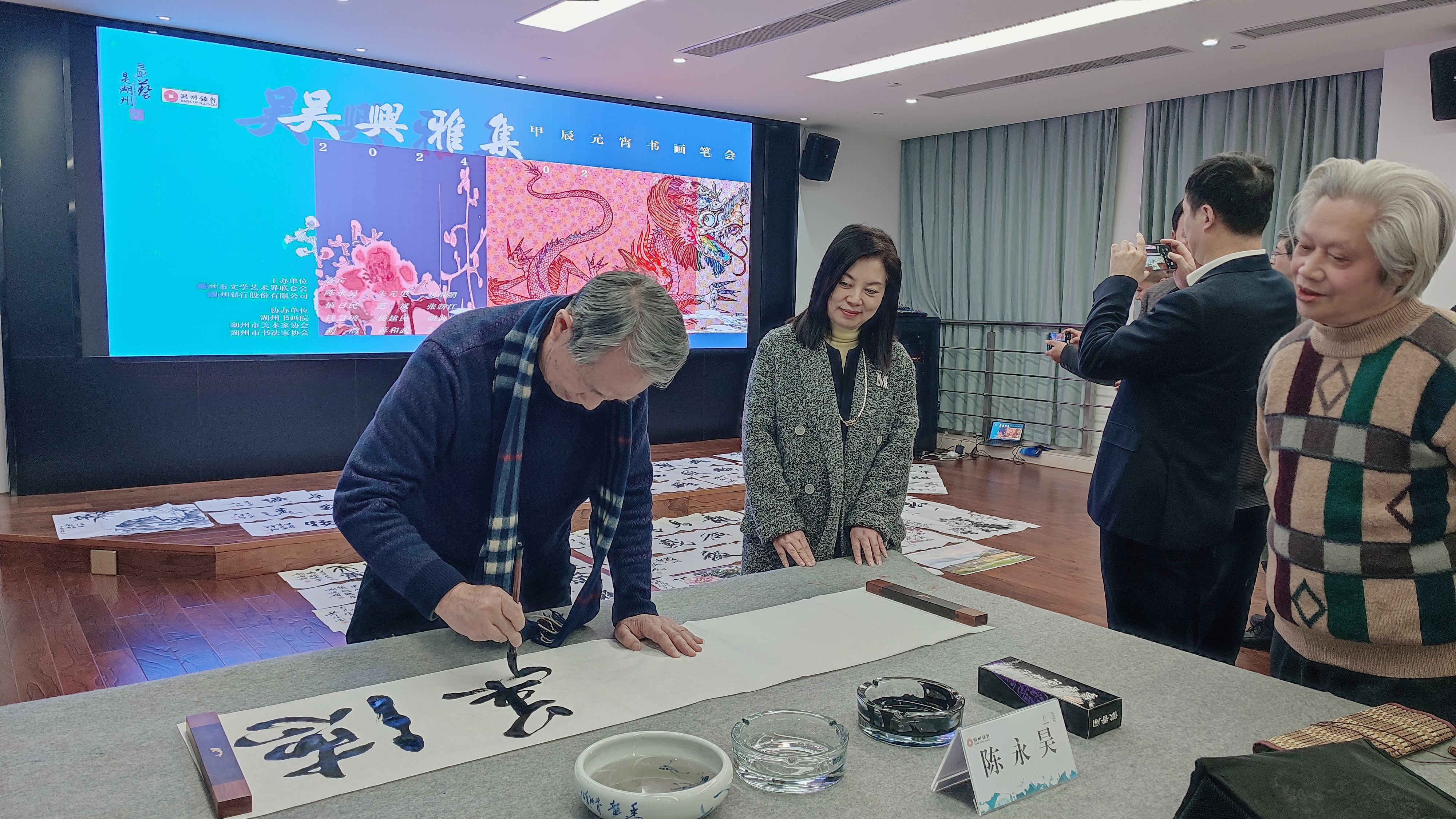 日前,湖州市文联和湖州银行股份有限公司联合举办“吴兴雅集——甲辰元宵书画笔会”。现场,各位书画名家们挥毫泼墨、畅叙心怀,用一幅幅笔墨精道、韵味隽永的作品喜迎元宵佳节的到来。