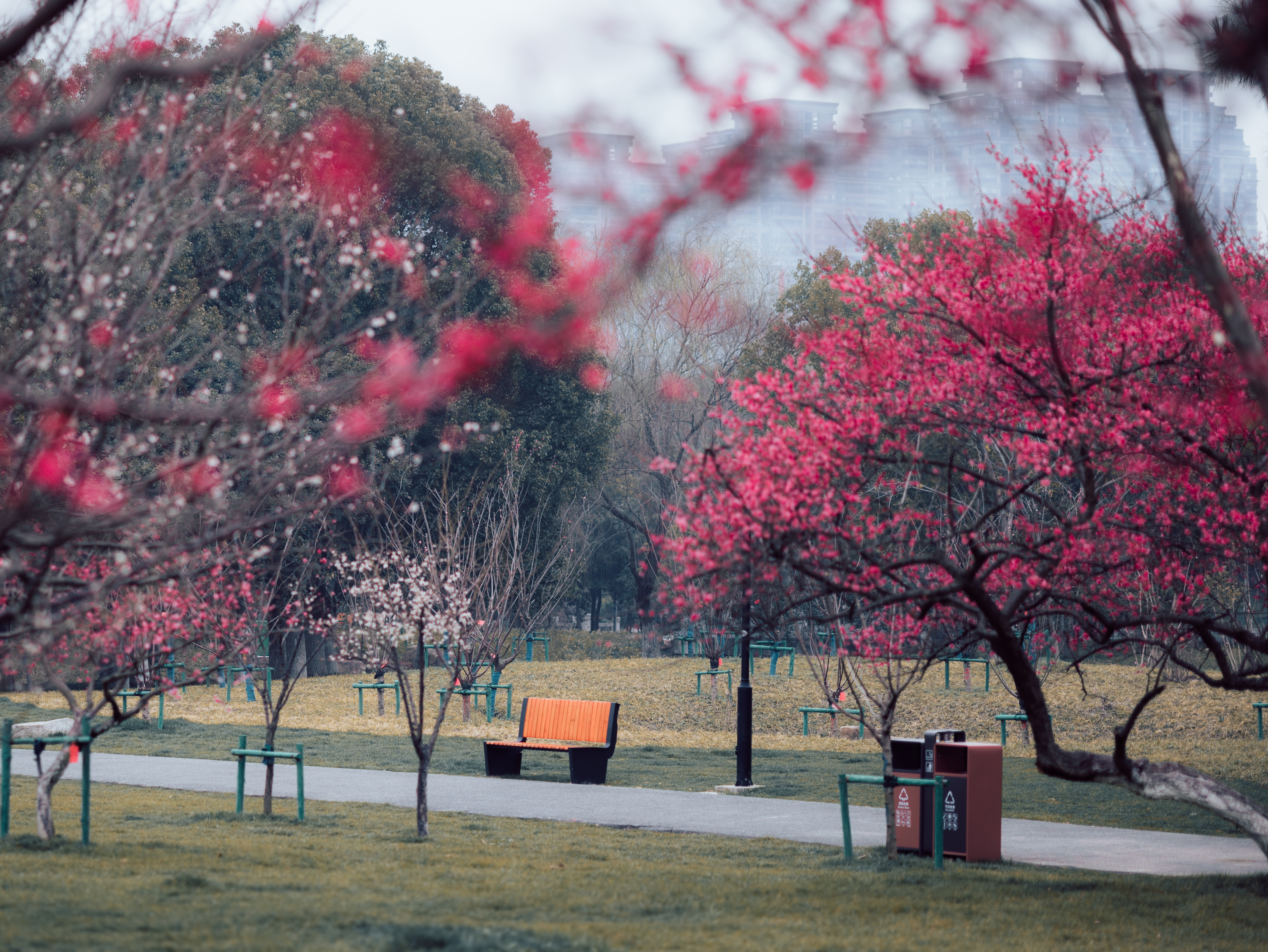 嘉兴植物园|寒梅绽放|太爱那一刻的慢节奏了 嘉兴植物园的梅花主要集中在梅园,这个梅园占地面积1.6公顷,2008年开园至今,已有300多株梅花,品型上包括朱砂型、江梅型、绿萼型、玉蝶型、洒金型和美人梅等。 除了梅园,国际友好园国际馆四周也有梅花,是古典建筑和梅花结合的比较好的地方。此外,梅园的边上还有政协林、沙雅林,这里有一种洒金型梅花,红色斑块在白色的叶子上,看起来比较好看。盲人植物园里也种植了梅花,这里的植物上有盲文,可以让盲人通过触摸来了解植物的信息。 梅花的花期一般在2月下旬,受到去年年底的寒潮和今年春节假期里回暖气温的影响,今年梅花花期约提前10天左右,最佳观赏时间可能还将维持7-10天,最近晴暖天气的加持,观赏期还将略有延长。 建议你穿着舒适的衣服和鞋子,带上相机或手机,记