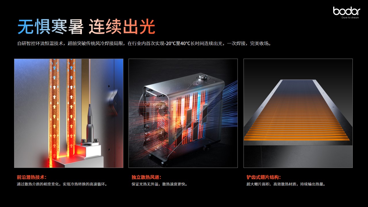 当前,中国正处于“机械加工”向“光加工”升级的关键时期,随着经济的发展与国家战略的深入实施,制造业对自动化、智能化生产模式的需求日益增长。现代工业的飞速发展让焊接正朝着更智能更高效的焊接方向迈进。然而,因手持焊的“小体积无法焊厚板”、“无法长时间连续焊接”、“焊接稳定性差”、“环境适应性差”等问题,激光手持焊仍面临多重技术挑战。 风冷手持激光焊因绿色环保、成本低而广受欢迎,却因高温下无法长时间稳定出光而深受诟病。3月17日,记者从济南高新区了解到,该区企业济南邦德激光股份有限公司(以下简称邦德激光)自主研发的自冷却手持激光焊,破解了上述问题,尤其是智控环流恒温技术,在行业内首次实现-20℃至40℃长时间连续出光。 山东是制造业大省,而邦德激光是山东省制造业单项冠军。据前瞻研究院发布的调研数据显示,邦德激光是细分领域的“隐形冠军”,其生产的激光切割机销量连续四年位居全球第一。 激光焊接机,又称为激光焊机、镭射焊机,是材料加工激光焊接时用的机器。作为一种新型焊接方式,激光焊接主要针对薄壁材料、精密零件的焊接,其利用高能量的激光脉冲对材料进行微小区域内的局部加热,激光辐射的能量通过热传导向材料的内部扩散,将材料熔化后形成特定熔池。 邦德激光产品经理陈超告诉记者,我们自主研发的智控环流恒温技术,能够实现对整机的智能感知和精准温控,确保自冷却手持激光焊运行稳定、连续出光;独立散热风道搭配前沿潜热技术,保证光热无外溢,实现冷热转换的高速循环;散热材质更佳、散热面积更广的铲齿式翅片结构,持续高速对外输送热量。 与此同时,邦德激光自研激光器与自研系统适配,实现焊接设备长时间足功率出光。在同等条件下加工4毫米熔深的工件,1200瓦自冷却手持激光焊的焊接效果和质量,完全可以媲美1500瓦水冷激光焊。 在国家级高低温实验室里,邦德激光自冷却手持激光焊进行了在数千次高温、极寒测试。测试结果显示:40℃高温环境下,光束质量持续高能,出光依旧平稳、强劲;-20℃极寒环境下,无需提前预热,开机即刻高质量出光,同样具备强劲的稳定性、持续性。 CNAS(中国合格评定国家认可委员会)权威认证机构测试表明,邦德激光自冷却手持激光焊所加工的钢材,焊缝齐整、平滑、美观,焊接工件无变形,在弯曲、硬度、拉伸等多项性能测试中优势明显。 “相比水冷焊接机,邦德激光自冷却手持激光焊整机重量降低50%,体积缩小2倍以上。”陈超表示,它的100伏-240伏宽电压设计(电压波动范围≤10%),能够满足不同国家和地区客户的用电要求。 “一键旋钮式界面”也是邦德激光自冷却手持激光焊的特点之一。陈超介绍,其内置完善的焊接工艺库,仅需选择厚度和材质即可完成工艺调试。这意味着即使是新手,也能完成高难度操作。
