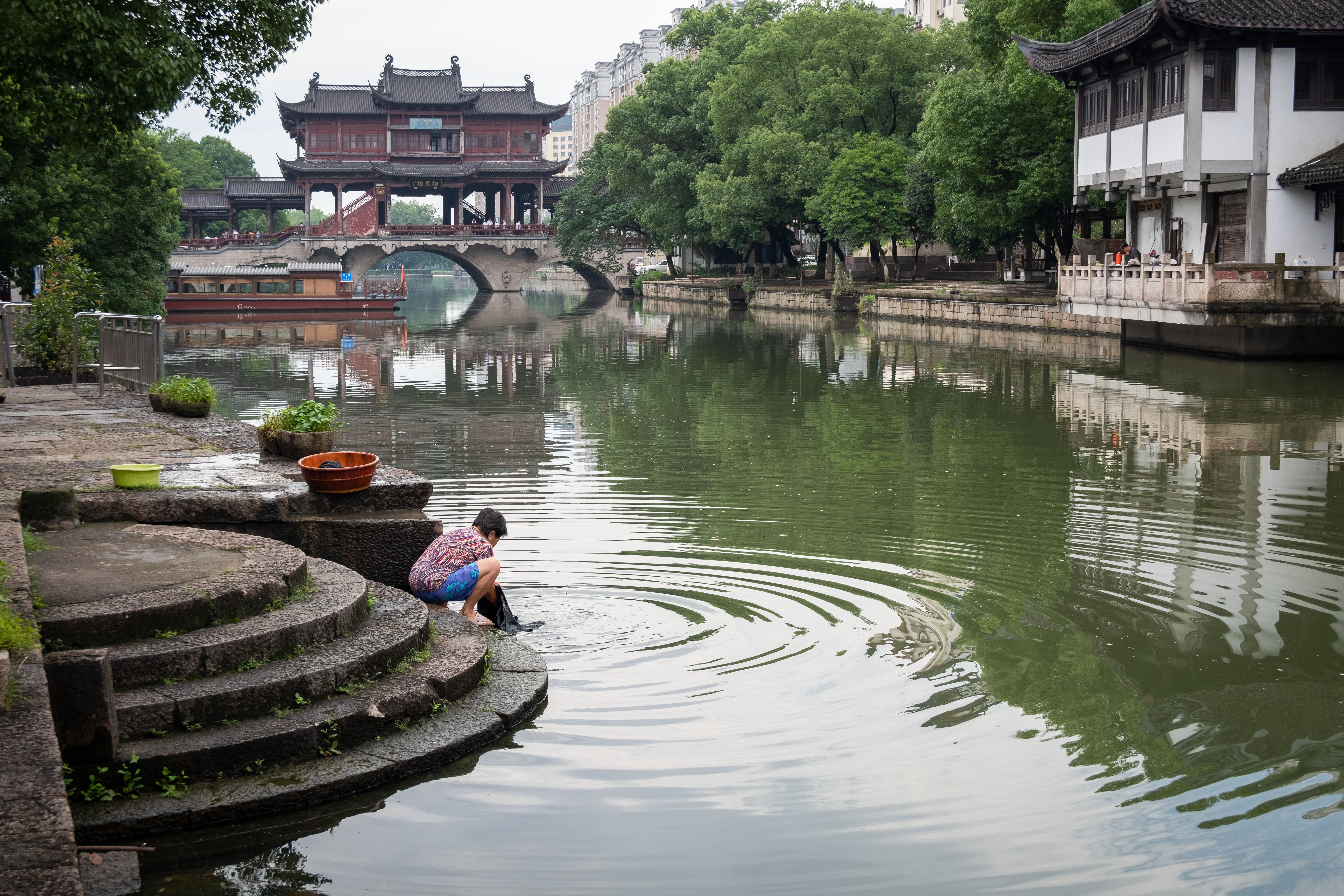 河埠头 埠者;乃附建于河堤的构筑物,后特指码头、河埠、船埠之类,江南民间也将河埠称作“步头”或“踏道步“的。 有河的地方便有河埠头,我经常在江南一带游走拍照,见过各色各样的河埠头。河埠头是水乡人家涉水、交通、亦是商贸交易、迎来送往和孩子嬉闹的重要场所。 宽阔的河道一般河埠头也大,往往正对河面宽约三四米,甚至更大,石阶与岸平行,绍兴乌镇一带水乡还有半圆型、平行加半圆混合型的河埠头,五六个台阶一级一级从堤岸上伸到河中。木心的《乌镇,回到这个我恨的地方》一文中,“儿时,我站在河埠头,呆看淡绿的河水慢慢流过,一圆片一圆片地拍着岸滩,微有声音,不起水花——现在我又看到了”,说的就是河水拍着那种半圆型埠头的情景。河埠即是日常洗漱之场所,也是船舶停靠以作渡口迎送往来或是商贸交易的场地,夜阑人静这样的河埠也是最为乡思乡愁的地方。 小的河埠一米宽左右,侧向而筑石阶与河岸成直角,从岸上伸到河中,基本都是侧着朝向河水,这种河埠以私用为主,且往往离屋宇特别近,有的甚至就在屋檐门口,以前杭州的中、东河有很多这样的河埠头。 河埠头有多种式样,主要有双落水和单落水。双落水和单落水又分内凹式和外凸式等几种,还有内外结合转九十度后伸向河面的河埠,这样的河埠往往台阶较多主要建在河面和堤岸落差较大的河道。双落水河埠还分背向双落水和面向双落水,背向双落水的河埠,还会嵌一块缆船石,缆船石上除凿有象鼻孔,考究的四周还要雕上如意纹饰,这象鼻孔是专门为靠岸的船只拴缆绳之用的。 我老家也有很多河埠头。 嵊州崇仁背倚五龙山属丘陵地区的一处千年古镇,长善溪亦称崇仁江穿镇而行,老家虽非水乡见长,却有江南水乡一样的毓秀钟灵,粉墙黛瓦、雕梁古筑、一样不缺。小时候在这里生活了几年,影响最深的就是几处“河埠头”。 崇仁的乡言将“河埠头”叫“踏道步“,“踏“有高低错落之意,因此“踏道步”一级一级延伸于河中,其表述达意也是十分贴切。 长善溪流经古镇后分出很多条溪沟,这种溪沟不宽且不深,但水流清澈是日常洗菜浣衣的好地方,小时候的夏天我就常在这里嬉水,这种溪沟的“埠头“基本就是一块毛石,大小不一或圆润或方正,即充当埠头也充当堤岸的作用,但是,这种石头在女人眼里就是一个好使的工具,女人在上面捣衣,由于常年捣衣的原故这种石头看上去都油润光亮。 晨光弥漫的河埠是一天最繁忙的时候,大家如约而至,捣衣、淘米、洗菜、河埠头的大部分时间都是属于女人的,埠头是个中心,于是洗的人和候的人开始交谈,很多消息便从河埠头流向各户人家。河埠也是乡愁,北宋诗人杨蟠在《去郡后作》一诗中写道:“思远城南曲,西岑古渡头。绿觞春送酒,红烛夜行舟。”就记载了古人对河埠的深切感情。家乡的河埠情感总是伴着棒杵的声响和女人的嗓音到响午才会渐渐的安静下去。 镇南亦有一溪,宽约二三米,不同的是水流湍急且有二处落差,溪上有几座古平梁桥,记得小时候跨过古桥外便是迁陌农田和几处晒稻谷的场地,古桥边建有埠头做工极为精致,整块的青石板且长又宽,而且离水面只有几公分,在这个河埠头淘米洗菜不用努力地将身体前倾故极为方便,因为河埠的石板又长又宽尤其适合洗棉被之类的大件,因为不远就是农地,这几处河埠除了女人在这里洗水洗菜外,男人也在这里挑水浇地。因此,这里亦是热闹非凡了。 这个河埠头很有年份,在溪的上游河道里还有一处“指道碑”遗址。但是,因为这里的埠头石板磨得光亮变得湿滑加上水急有一定的危险性,这个埠头基本没有孩子去玩。有一年不知啥原因我居然去了这个河埠头,当被人救起的时候据说我已经在埠头下游5-6米开外了,被送回家时,我的祖母听说后,面容煞白吓得要死,跪在地上不断拜天拜地,从至以后我再没去河里玩过水,第二年,便把我送回了父母身边。 在旧时,河埠头是两岸百姓日常生活的重要场所,在没有自来水之前,河埠头和人们的生活紧密相关,一年四季,在河埠头发生的事情,就是当时社会的一个缩影,每日晨昏,河埠头还是一道亮丽的风景线。 自从通了自来水和城市河道的改造,河埠的风景便成了城市的一种记忆,而江南水乡的河埠依旧,但,还能重回往日的热闹景象么?