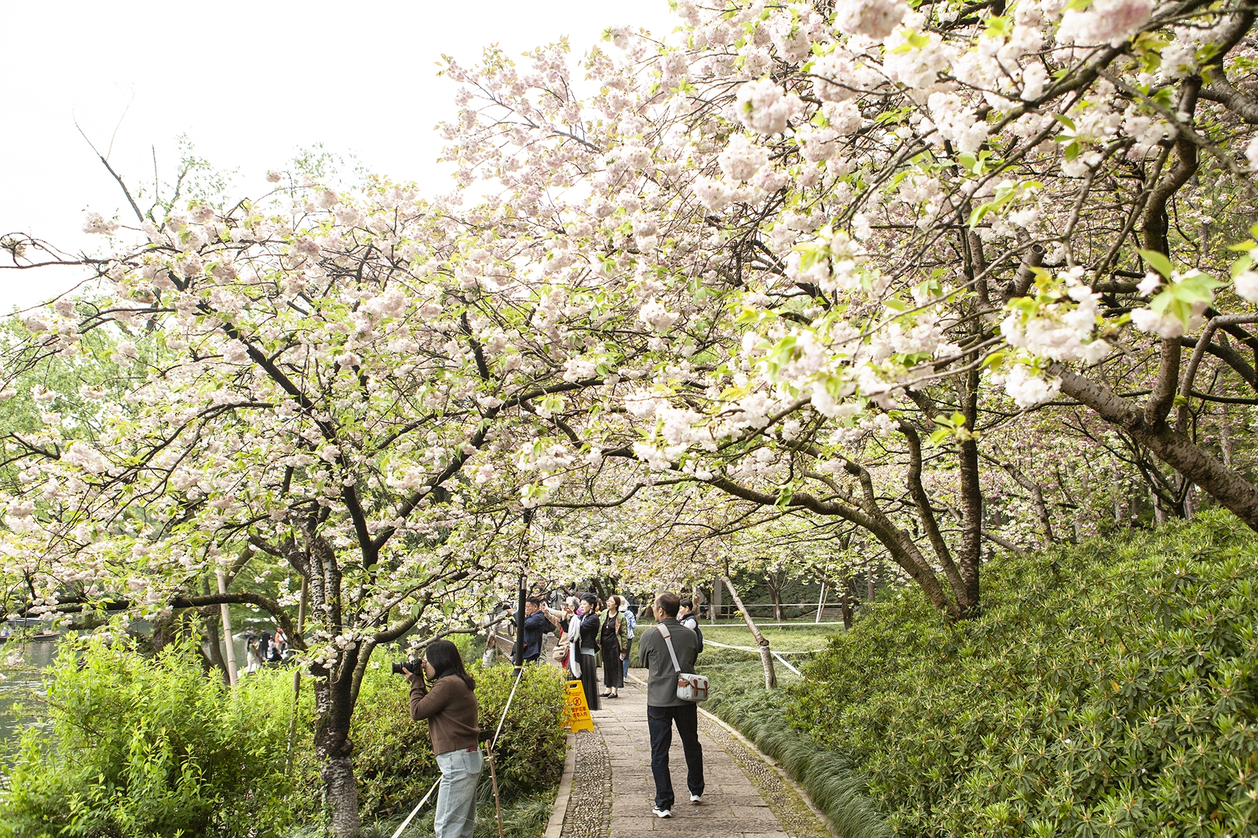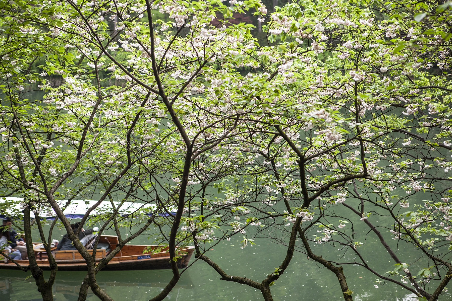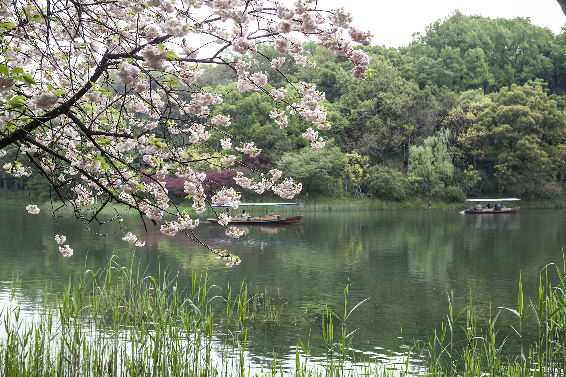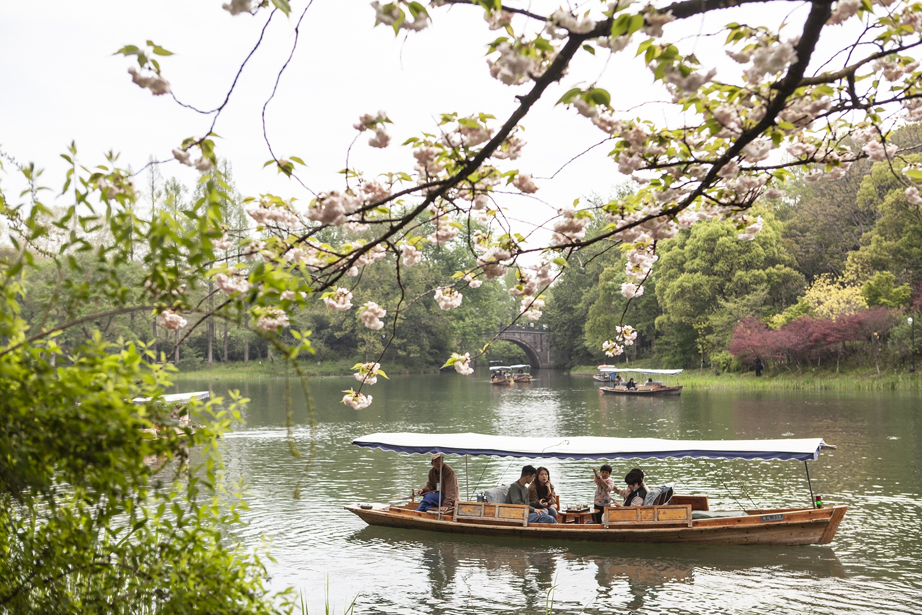 湖水清清西湖秀,花影绰绰游船行。桃红柳绿梨花白,最美人间四月景。