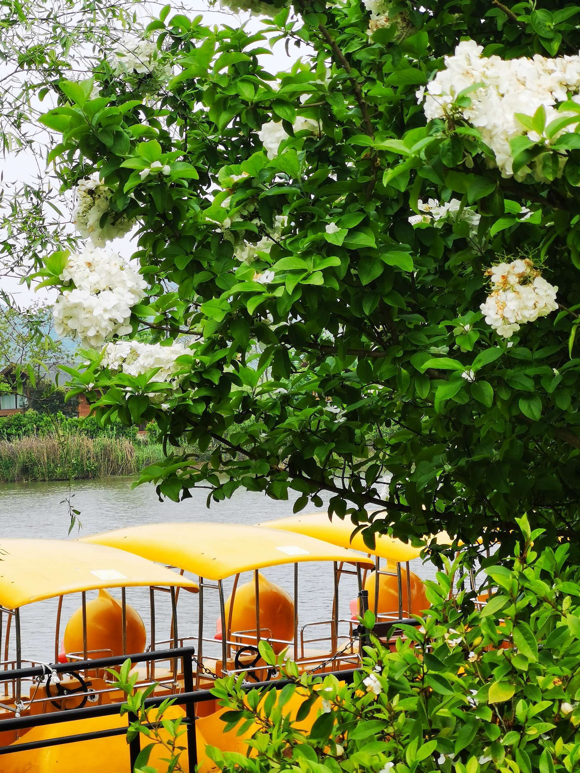 看尽繁花才知春/钱江湾 绿柳吐烟,陌上花艳。赤脚淌在四月的时光河流里,只需我们轻展眉目,便有柔柔的明媚妖娆在眼眸;只需要我们静心侧耳,就能听见花木拔节的声音。前路也许还飘着些许小雨,但斜风细雨不须回,雨过天晴时,天空会变得更加明净,林间会有说不出的空灵,碧水传情,山峦叠翠,皆是芳菲浸染。 白色的樱花飞雪飘零的时候,红樱冷不丁窜了出来,上班途经的林荫小路,随处可见她的身影。许多人俗称她为八重樱,她模样似更秀丽更炽热更吸睛,随便爬上哪一片树荫,爬上哪一幢高楼,都能成为醒目的国画。 八重樱花瓣比粉白的早中樱要大许多倍,绵绵不断的春雨中,她倒是更耐风更抗压。如果说白樱是弱柳临风的“林妹妹”,她就是那雍容华贵的“宝姐姐”吧!也许我们已经先入为主了,把太多太多的诗情和赞美给了人见人爱的“林妹妹”了,留下给“宝姐姐”的反而捉襟见肘了,但我还是非常钦佩和感念她的忍耐和坚守! 一千多年前的老市长白居易,曾在一座古寺里为寂寞开无主、郁郁少人赏的白牡丹鸣不平:“城中看花客,旦暮走营营。素华人不顾,亦占牡丹名。闭在深寺中,车马无来声”。五颜六色的牡丹花固然很让游客们青睐,几株玉质冰清的白牡丹也惹人怜爱,点点滴滴的清露在花瓣上晃悠,从大光圈镜头中凝神贯注,灯火明灭的佛影之下,洁白娇秀的白牡丹不正是绽放在摄影人眼前的白月光吗?! 唯有牡丹真国色,花开时节动杭城。四月的春风里,尽管桃李四处芬芳,一年一度的六和塔牡丹花展持续举办了好多届,成为了杭城爱花市民心中的大“庙会”。百态千姿的牡丹花,在千年古塔前争妍斗艳。娇艳欲滴的花姿与禅意绵绵的塔影交织,将平日幽静肃穆的听涛观潮地装扮得容光焕发,活力四射。 清明过后的几天,微风轻拂,雀鸟鸣啭,满树繁花的木绣球洁白如雪,开始荡漾在浓浓的春光中,蔚成大观。从西湖到湘湖,本地主流媒体已就绣球赏花连续报道好多次了。 疑是琼瑶初琢就,一团香雪滚春风。绣球生性清雅高洁朴实无华。漫倚花树,头顶着沾满露珠的一树清新芬芳,脚下踩的是纷纷扬扬飘落的绣花雨,浪漫和温馨的感觉油然而生。我欣赏绣球花的那一种淡然和宁静,她虽然树身高大但并不高调,总是要在绿荫的衬托下才看得真切她的洁白。 在名花丛中徘徊,我开始关注起她们的成名之前的青葱岁月,恰似走进明星的故里,看看她们少年时意气风发的模样。比如这山茶花,既具有“唯有山茶殊耐久,独能深月占春风”的傲梅风骨,又有“花繁艳红,深夺晓霞”的牡丹之鲜艳,是中国传统“十大名花”,亦是世界上公认的名贵花卉。 以前都热衷于打量山茶花绽放时的艳丽多彩优雅不俗,说实在的,还真没好好瞧过她蓓蕾初绽时的娇秀和柔美。碧水河畔的老桥上,几株山茶清朗但又孤寂地站立着,路过的一拨拨的游客,都视而不见地一闪而过。她们是鲜艳的,但又是冷清的,她们渴望人们的一份目光的慰籍,可还是很失望,很落寞。 我轻轻走到她的身旁,欣喜地看着一只只红彤彤的花骨朵,像熟透了的小苹果,在徐徐春风中含苞待放。也许我们已习惯了追逐大众公认的视角热点了,居然没能花太多时间多看看名花还未华丽转身的从前! 从雨后的草径上路过,总有你不熟悉的未名小花探头探脑,她们不争风华,不负春光,竭力用自己的整个生命绽放一生中的辉煌。我惊喜见到娟秀低调内向的小花,原来这就是莫奈笔下的鸢尾花,但也有的人叫她是蝴蝶花。说她是鸢尾花,概因花瓣形如鸢鸟尾巴而名之。在我心中,觉得这两种都属同一科别的,并不会因沾了莫奈的仙气而高看,仅仅从模样上就有天然的欢喜。 这花素雅大方,像一只只蓝蝴蝶飞舞于绿荫丛中,仿佛诉说着对春日的脉脉深情。她有蓝、紫、黄、白、红等颜色。河边的多是紫蓝色的,蓝色和紫色的都寓含暗中仰慕之意的。我欲靠近她,又恐被她笑我自作多情。 忽如一夜春风来,千簇万簇鹃花开。钱江新城里的行道两旁,开满了深红紫红不一的杜鹃花,红红火火气场十足的杜鹃花辉映着周边的高楼大厦,似天边的锦绣未央,似一团团熊熊火焰照亮了我,恍恍惚惚之间又忆起了儿时漫山遍野的映山红。 大红、粉红的杜鹃汇聚一堂,与杜鹃鸟鸣的时空遥相呼应。花是时间的香与色,鸟是空间的声和影。鸟穿花底,是超越时空的美意,是人间四月的一场衷情。中国有很多同名的花鸟,但很少有哪一对会像名叫杜鹃的花鸟一样,彼此之间用生命去给予,去成全。他们是不相守的知己,两个身体,一个魂灵。 最爱人间四月天,万丈霞光不堪秀。透过花团锦簇的杜鹃,我注意到街头不时匆匆闪过的,那些快递小哥或者大叔忙碌的身影。我想起最近翻看的剧集《心居》,剧中海清出演的快递临工,为了不让公公一家低看她,情愿出去靠自己打拼来谋求精神上的自立,她风里来雨里去,只为了不误点,客户不至于给个差评。这些穿黄色绿色、既熟悉又陌生的人物,杜鹃灿燃的时候,值得我们大气地给他们点赞,也许无法看得清他们的脸面,但无碍于心中的一丝敬重。 江南四月,美如画图,红黄紫粉,给大地涂上五彩缤纷。从来只说映山红,幻出铅华夺化工。各色姹紫嫣红,都是是平静生活里的炫丽烟花,都是淡淡忧伤中的一脸欢颜。 久居城市惯了,生活条件比不得从前了,内心隐秘处与生俱来的童心,以及长大后好不容易积攒下的一点诗性很容易逐渐泯灭