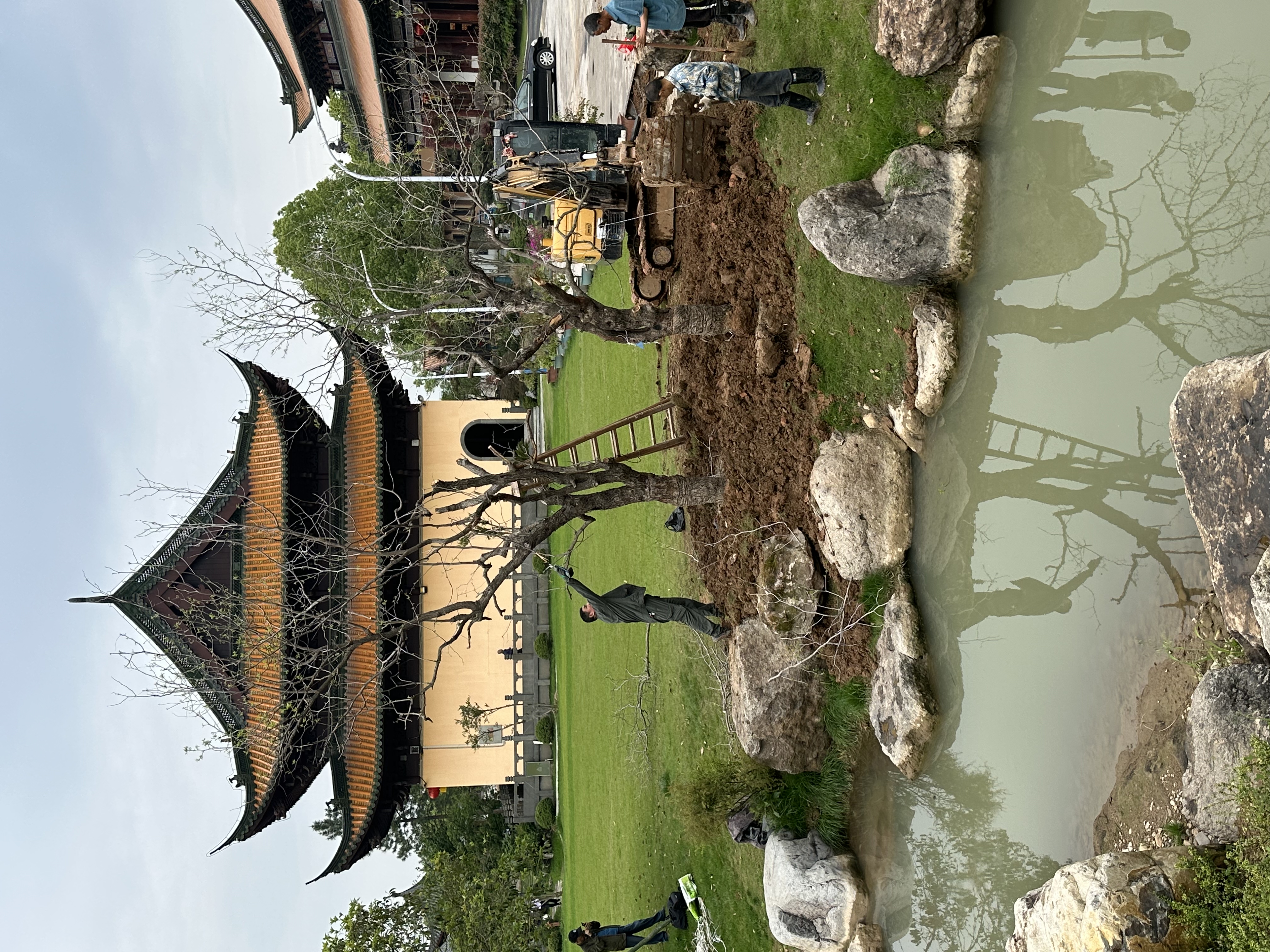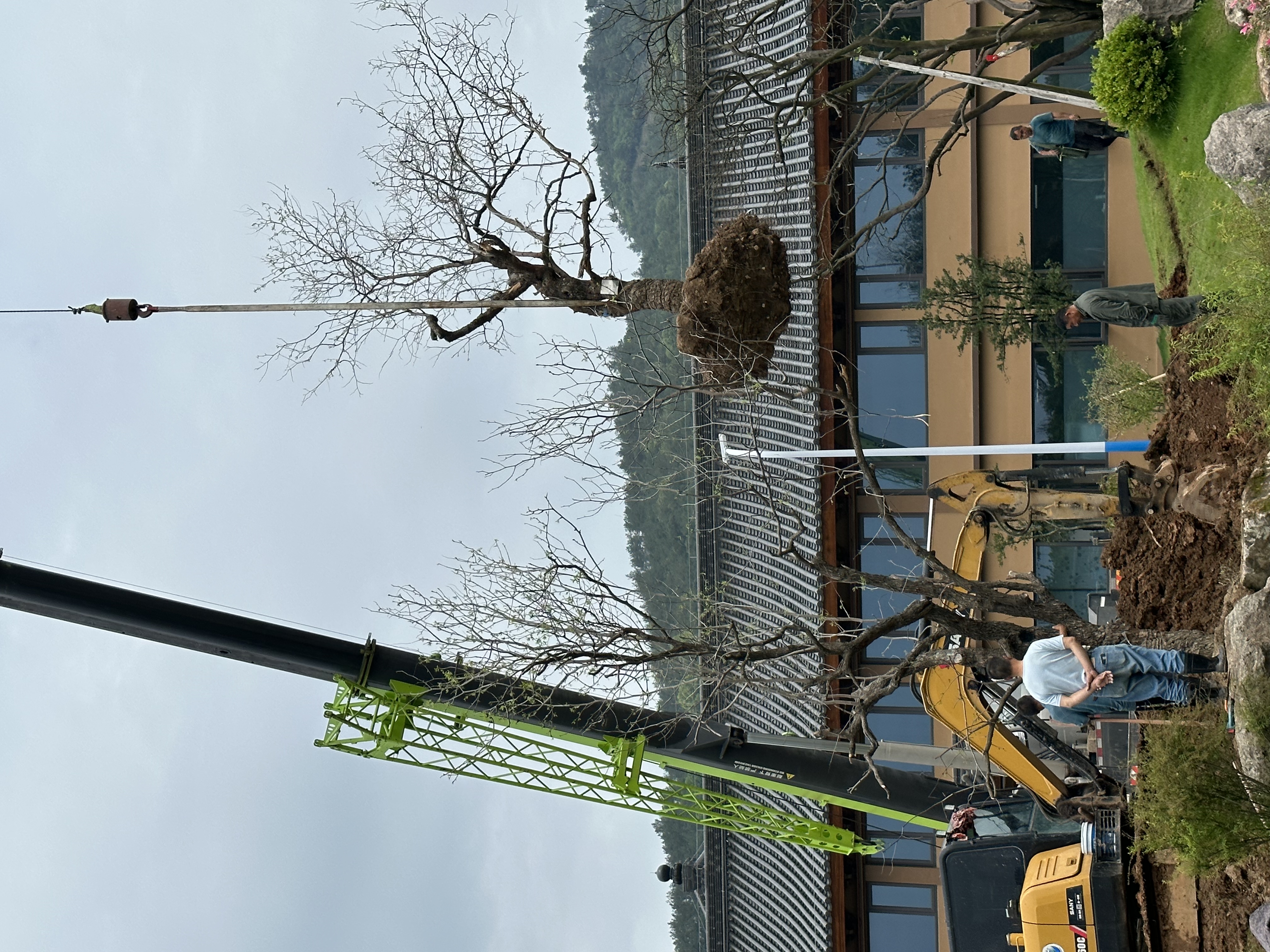 一脉枣香润双林 南北枣树共芳菲 文/王曙光 摄影/陈晓焰 王健红 陈静 “靠左,往下,放正,对,就这样……”昨天上午10点20分左右,随着一台挖机和一台吊机的连续作业,来自山东乐陵市的两棵约六米长的数百年老枣树,正式落户千年古刹义乌双林禅寺。 4月7日,双林禅寺已新增两棵义乌枣树,给这里更充盈着一种生命流传的动势神韵,一种气象万新的逸态神姿。据了解,现该寺的配套景观工程进展顺利,“三心一轴”设计理念已形成,有山有水有瀑布,大乔木种植等景观也已初步形成。 笔者现场看到,山东乐陵枣树植入点离双林寺瀑布假山景点处不远,与义乌枣树种植处的转轮藏殿距离约120米,四颗枣树遥遥相对,英姿勃发,掩映在双林禅寺的大片意蕴景观中。负责枣树种植的义乌枣业协会会长何丁生说,枣树喜阳和干燥的地方。山东乐陵枣树若能保证原有品质和“风味”的话,可以与义乌枣树嫁接,也可以不嫁接,如能适时易花授粉,挂果率也会更高。 资料显示,历经1800多年时光的淘洗,义乌大枣已收获灿烂文明,如今更有科技连接古今中外智慧,进一步催生枣产业的发展新动能。前几年,义乌枣业协会已经同河北农大达成枣产业科技小院合作意向。用何丁生的话说,希望千年古刹树种繁多,亦有故乡枣林的幽幽枣花,有根深叶茂的沉甸甸的枣子飘香,游客到这里可品可赏可怀想;同样他也期待双林禅寺能开辟一块枣产业“科技小园”,供枣业研究人员在此研发,选育更多的枣新品种,助力义乌枣业创造新辉煌。 那么,山东乐陵枣的历史有多长?品种资源在哪?据悉,它始于史前,兴于战国,盛于明清,鼎于当代。在悠久的历史长河中,该枣以其优良的品质、丰富的食用及药用价值,成为乐陵土地上最为靓丽的一道风景。 总之,晴也好,雨也好,在双林寺,义乌人专属的赏景浪漫来了!